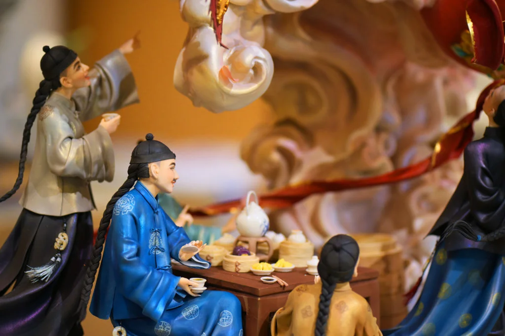 從喜慶回歸到日常,展覽亦展現嶺南日常文化的多樣性。周毅在展品《醒獅茶樓文化》中運用空間交錯的手法,將嶺南地區兩大生活文化的代表──醒獅及茶樓文化,結合在一座立體翻糖雕塑之中。每逢春節等喜慶節日,茶客們一邊交際,一邊欣賞鼓樂齊響的舞獅表演,把熱鬧、富人情味的嶺南風情帶到觀眾眼前。