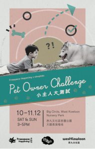 救狗之家(Hong Kong Dog Rescue)和ohmykids於12月在西九文化區舉行「小主人大測試」活動,他們的義工會向大人和小朋友傳達照顧寵物的責任和常識。活動首先由童書分享開始,以有趣的故事帶領孩子走進寵物世界。此外,救狗之家的義工也會導教小孩子各類照顧寵物的實際技巧,例如如何餵食、梳毛和清理便便,孩子更要面對「過三關」體驗遊戲,進行實地測試。