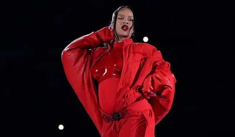怎樣才能讓最多人知道自己的喜訊呢?學學Rihanna吧。她登上世界上最大的舞台之一美國超級盃中場秀,身穿Loewe紅色訂製戰衣,捧著微凸的小腹勁歌熱舞,最好笑的莫過於她在台上置入自家品牌「Fenty Beauty」來補妝,廣告費也省卻了。
