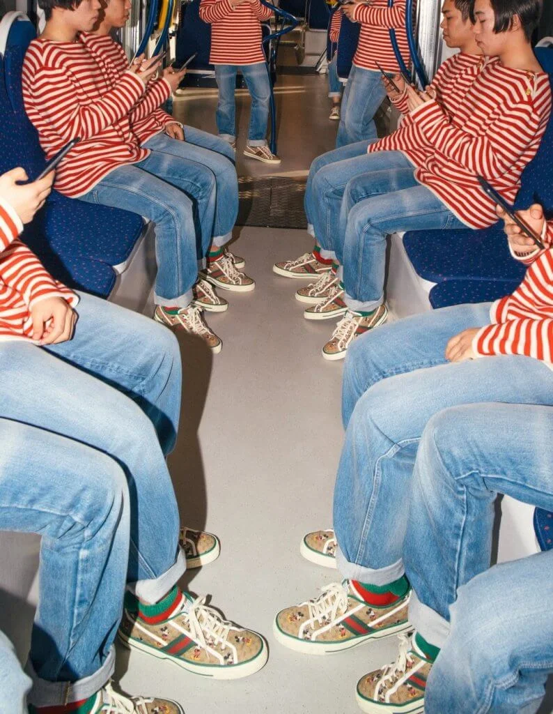 常言時尚界最忌撞衫,近日Gucci卻為其重新發行Tennis 1977運動鞋,推出名#Accidentalinfluencer項目,以模仿和複製概念為題,讓人穿上一模一樣的衣服,帶來一系列「人人像你」的有趣影像,背後又代表甚麼意義?
