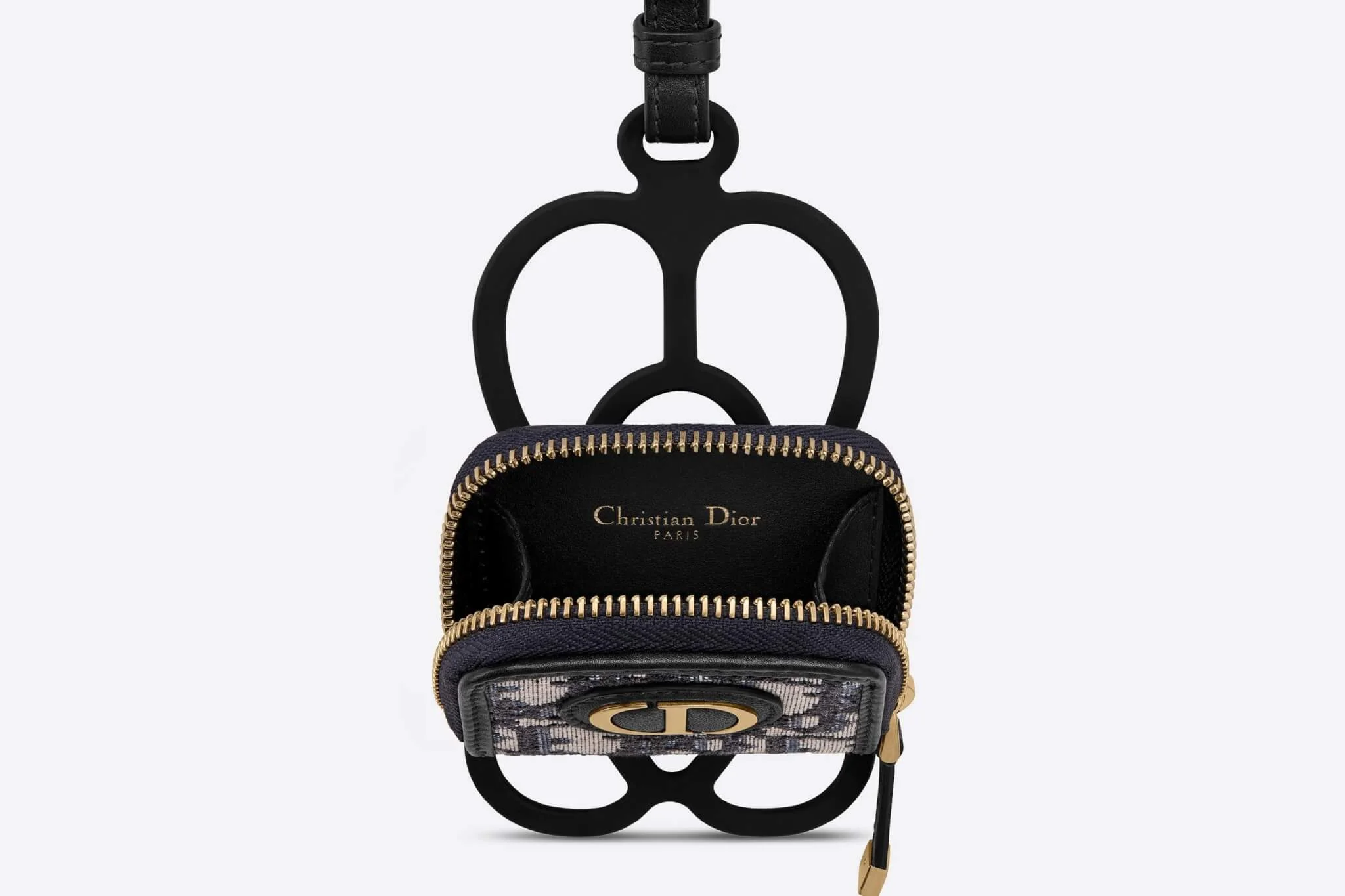 這個30 Montaigne系列的手機套,除了放置電話的橡筋帶,同時亦配備皮革掛繩,用家能調整長度掛在頸上或揹在肩上,提供多功能搭配效果。手機套正面縫着一個小型拉鏈包,印着經典Dior Oblique印花和釘着金屬CD綴飾,優雅與型格兼備。官方網站上,這個小型拉鏈包用作放置AirPods Pro,其實換成鑰匙、零錢等亦可,比起單純一個電話保護殼更實用。