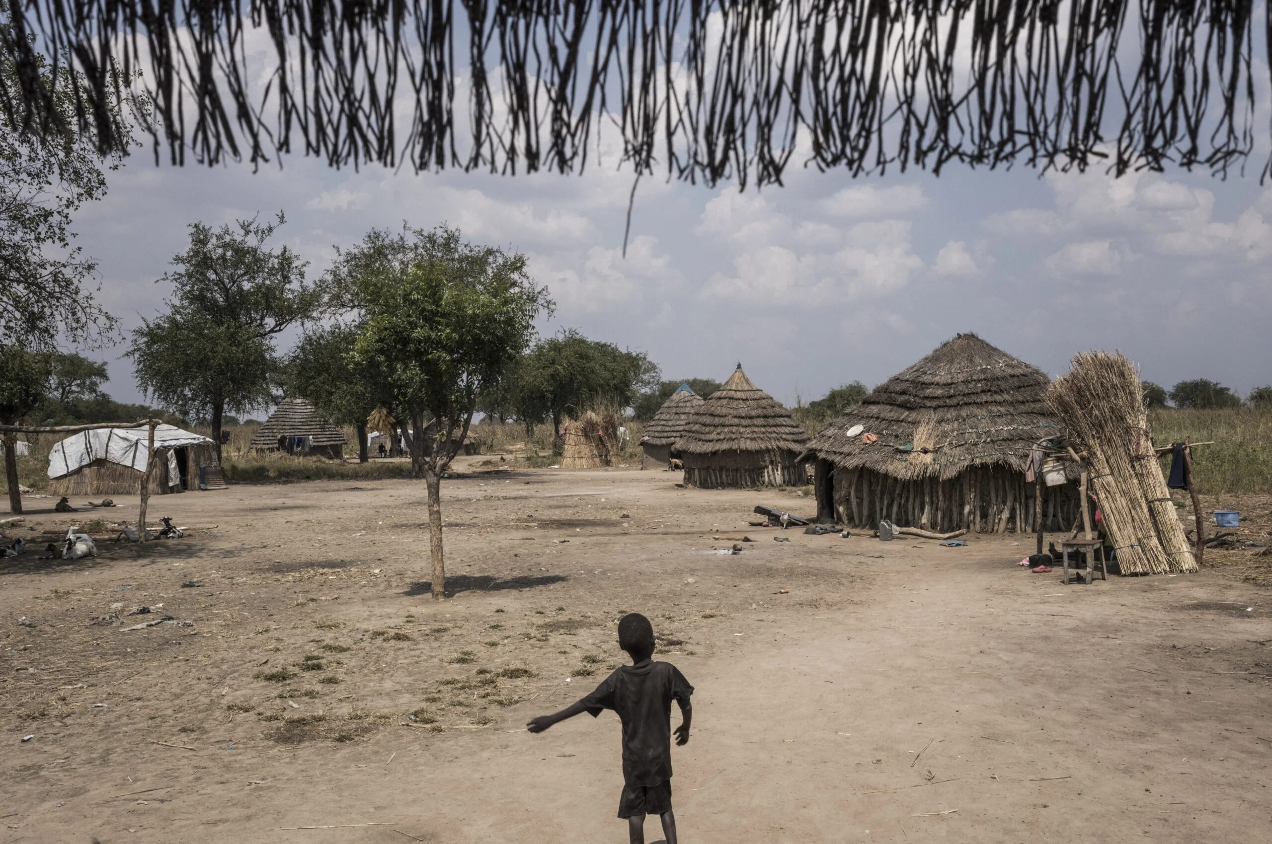 一名孩子在阿卜耶伊的一條村落。這裏處於蘇丹與南蘇丹的邊境之間,收容了分別為逃離暴力與戰火而至此的南蘇丹和蘇丹人。