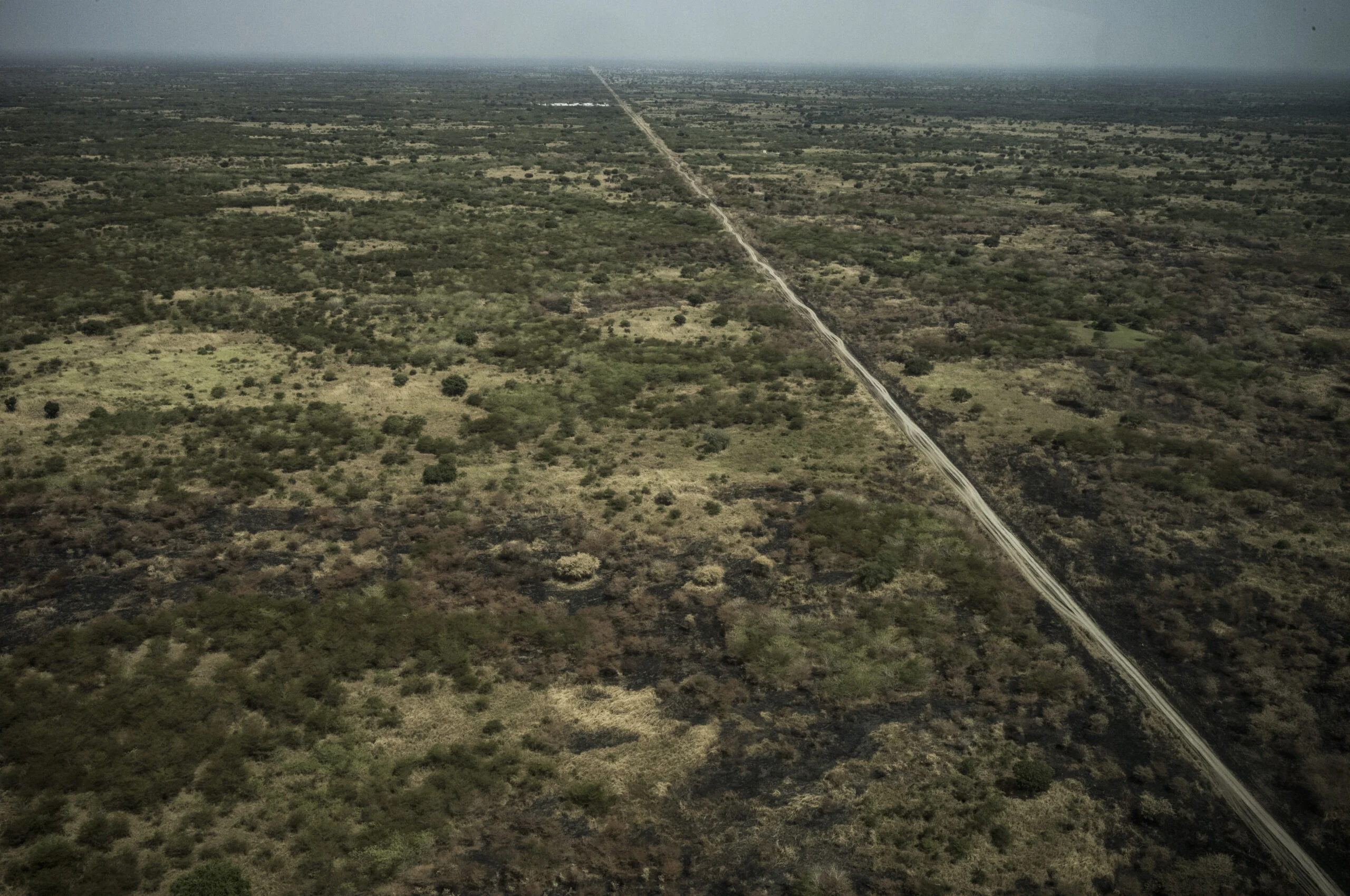 一條看似無盡的「直線」向前延伸,那是一條連接蘇丹與南蘇丹邊境地區、阿卜耶伊和馬延阿本的公路,是成千上萬人逃離的衝突的逃生路線。道路兩旁荒無人煙,只有被燒毀的牧場和茂密的灌木叢。