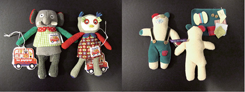 正在寫布偶,忽然收到一個包裹,原來是《明周》一位記者朋友送我兩個布娃娃,可不巧,恰恰是我最喜歡的法國Moulin Roty的出品,真是快樂得暈得一陣。果然是名廠設計,與眾不同。一輛雙層巴,共七位乘客,兩位到了我家。象有長鼻子,還有象牙,貓頭鷹有大圓眼,還有眉毛;軀體為半邊圓錐形,所以能坐,全身花呢絨,穿布妹裙,多幅紙樣拼縫,非常立體感,難得的好作品,謝謝朋友。