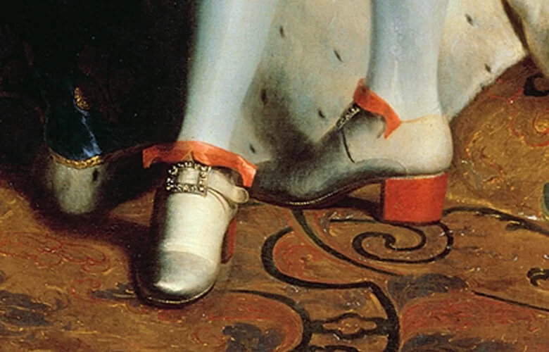 高跟鞋的出處並沒有明確記載,坊間亦眾說紛紜,但唯一可以確認的是:最先穿上高跟鞋的都是男人們。最早以前,延長的鞋跟是專門為騎馬之用,目的為了讓騎師的腳能固定在馬鐙,方便站立於馬鐙令射箭時更穩定;隨著時間,人們又有了「鞋跟越高,越接近神」的迷信觀念,故這不難解釋鞋跟的高度,怎樣能夠反映著一個人的地位,當年法國國王路易十四(LOUIS XIV),也穿上高跟鞋來彰顯地位和權力。不過男性穿著高跟鞋的歷史,則隨著拿破崙決意捨棄高跟鞋,人們受到啟蒙思想的影響,而步入階段性的尾聲。