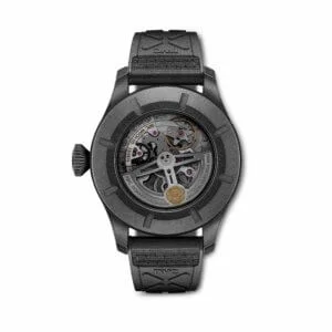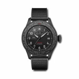 至於飛行員系列TOP GUN海軍空戰部隊瓷化鈦金屬世界時間腕錶,錶殼同樣以瓷化鈦金屬製成,城市圈則採用陶瓷製造,刻有24個城市名稱,分別代表一個國際時區。錶盤上印有灰色數字,其中數字12、3、6、9覆有夜光物料。全黑色的軍事風格設計搭配淺色藍寶石玻璃底蓋,以及帶有織物內襯的黑色橡膠錶帶,令腕錶更顯魅力。