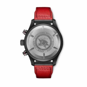 另一款「Tophatters」腕錶,其名稱其實是加州勒穆爾海軍航空基地第14攻擊中隊基地的綽號,為海軍歷史最悠久的現役中隊。這款特別版腕錶的錶殼由黑色氧化鋯陶瓷打造,計時按鈕和錶冠分別由品牌研發的瓷化鈦金屬所製,如鈦金屬般輕盈堅固,並能像陶瓷一樣堅硬抗刮。在日期和星期顯示、計時秒針及小秒針的尖端,以及黑色小牛皮錶帶上的縫線,均用上中隊的代表色紅色,增添獨特細節。