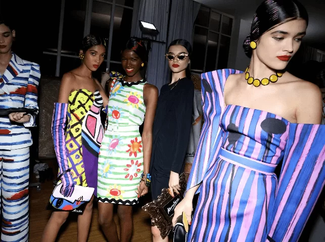 「繆斯賦予藝術家靈感,藝術家則將其賦予世界。」一貫愛搞怪的Jeremy Scott再次為世界奉上了一場視覺盛宴,從畢加索和音樂之中抽來靈感,轉化成抽象浮誇的設計語言。設計師把繽紛的色塊和筆觸塗上平面的衣服上,模特兒馬上變成真人大小的紙娃娃,挺著立體主義的風格和小提琴、鋼琴等樂器,在天橋上行走。