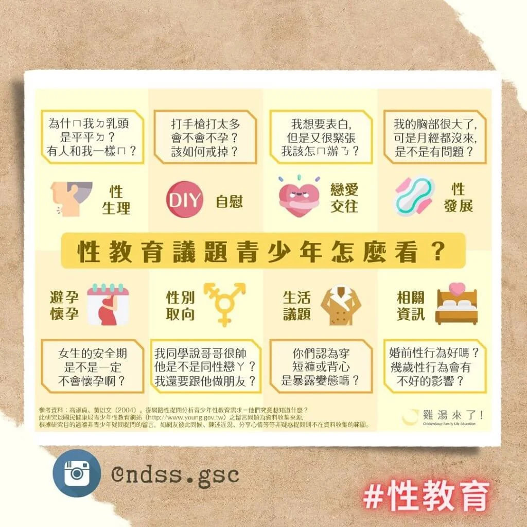 現時,性教育並非獨立成科,而是屬於「價值觀教育」其中一個跨課程學習範疇,個人成長、青春期、戀愛、性別平等、婚姻等與性教育相關的議題,會在中小學各主要學習領域、學科、德育及公民教育課程,以及不同校本活動中教授,內容並無硬性規定。教育局發言人表示,學校可依據教育局的課程指引及文件,並按其辦學宗旨、校本情況、學生成長特質和需要,規劃合適的課程及相關學習活動。四位成員都認為,學校目前的性教育課程不足且過時。在她們就讀的學校,性教育主要在周會上教授,內容涵蓋性別平等、職場性騷擾等。初中的科學課甚至直接跳過了有關生殖器官、性行為的一課;高中的生物課程中則有一個單元”Reproduction in Human”是與性教育相關,但若同學沒有選修生物科,根本不會接觸到相關知識。完人批評,校內的性教育多以生物科角度出發,而且內容過時,「唔會教到性行為,性別認同、性傾向、性別氣質,這些比較西方、新潮嘅term係唔會講,最多講到現在男女都可以做同樣的職位,要同工同酬,或者職場上女仔受到性騷擾要向咩人求助。」ss+亦表示:「講親都係比較膚淺,可能係大家好耐之前已經知的知識,其實大家都唔會認真聽。」