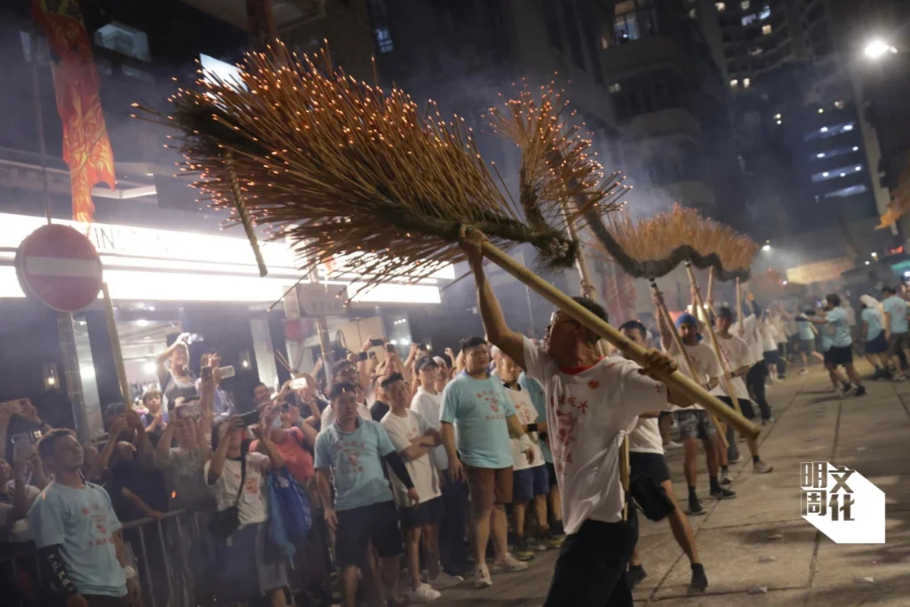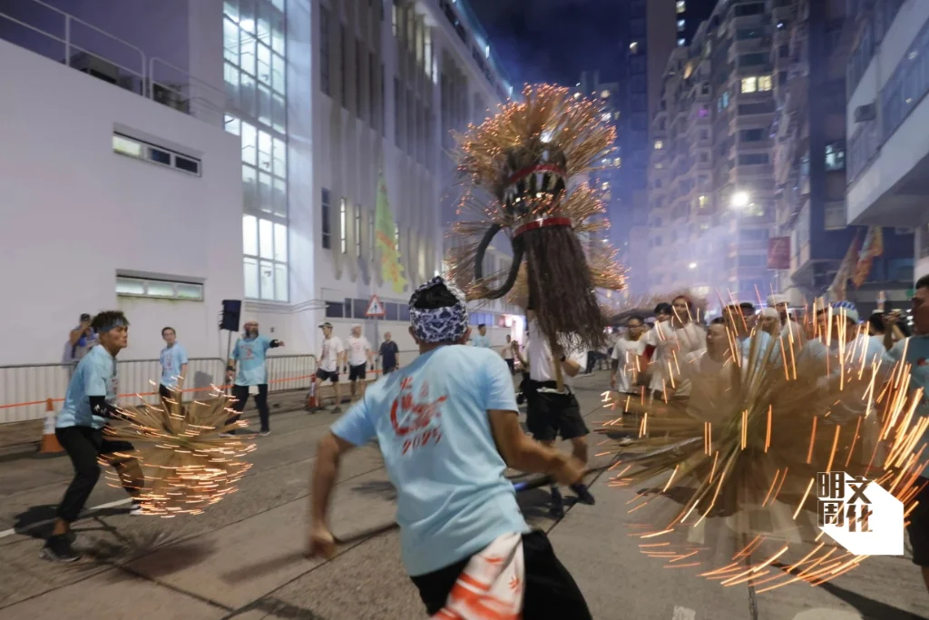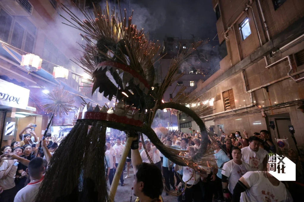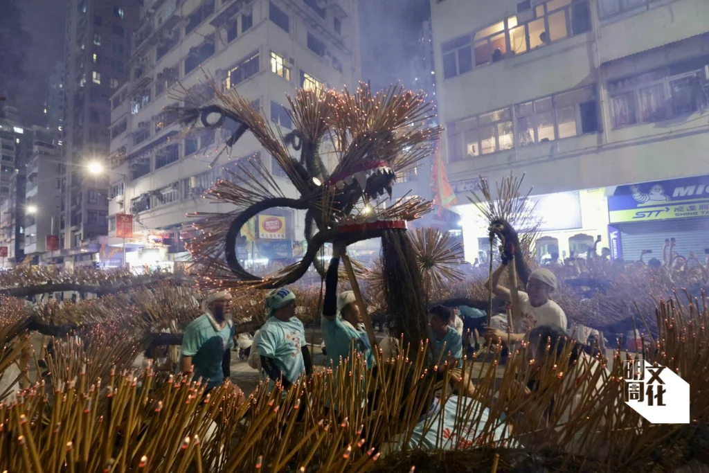 「火珠」引路,二十多層樓長的巨龍,由安庶庇街出發,經浣紗街,蜿蜒前行至維園。一萬多枝長壽線香,煙霧繚繞,守護着繁華都市的每份素願。