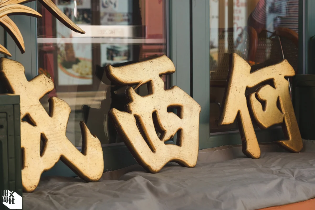 Carol說,這副招牌是何老爺一九二十年代在廣州經營金舖起家時,在廣州製造,「何西成」的金漆招牌由百年樟木造成,面層上閃爍金箔是經過微熱熔工藝貼上。即使逃難再艱辛,何老爺堅持跨山涉水帶着招牌,來港後落戶西貢市的金舖亦一直沿用此招牌,並定期請師傅用純金箔翻新。金舖至今已結業二十多年,何太一直妥善保管招牌。