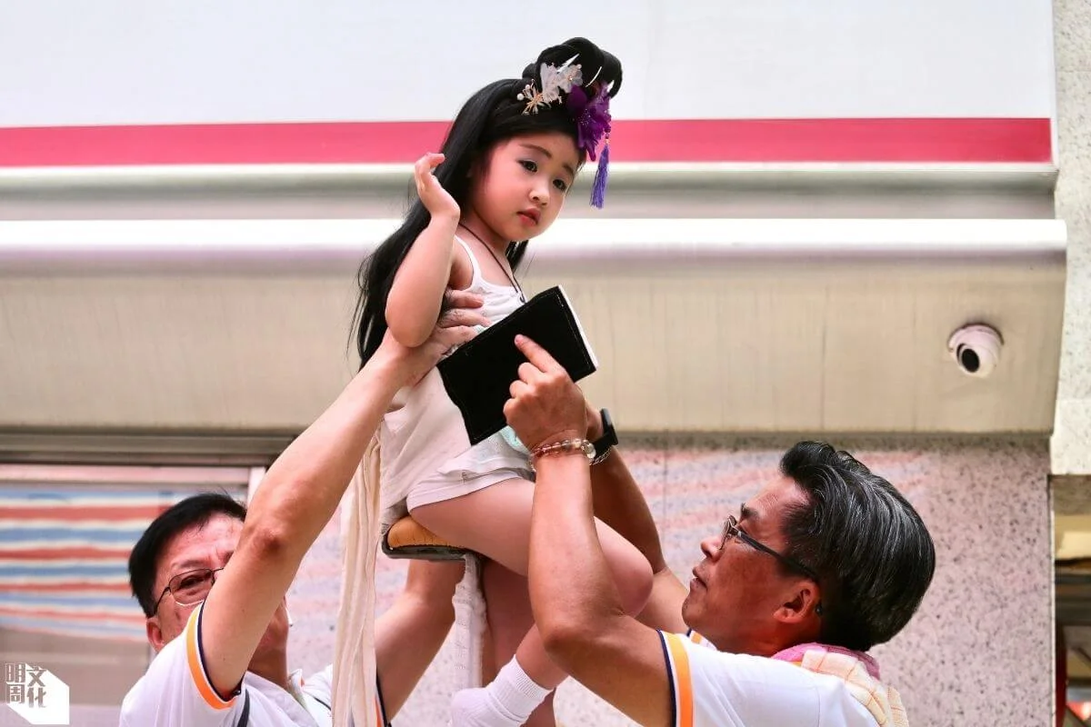 馮栩澄的外婆數年前已協助巡遊團隊,替「色芯」舉傘,笑指想不到今年會是自己的孫兒站上「色梗」。