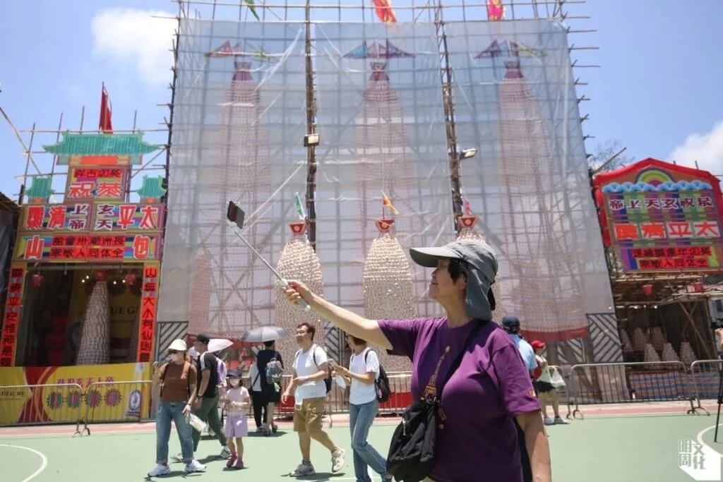 年度長洲太平清醮,因疫情停辦三年後今屆復常。一連四天的太平清醮來到第三天佛誕,下午舉行的飄色巡遊向來是重中之重,有團隊續以政治人物諷時弊,亦有團隊讚揚本地醫護人員、運動員,及內地航空科技等。