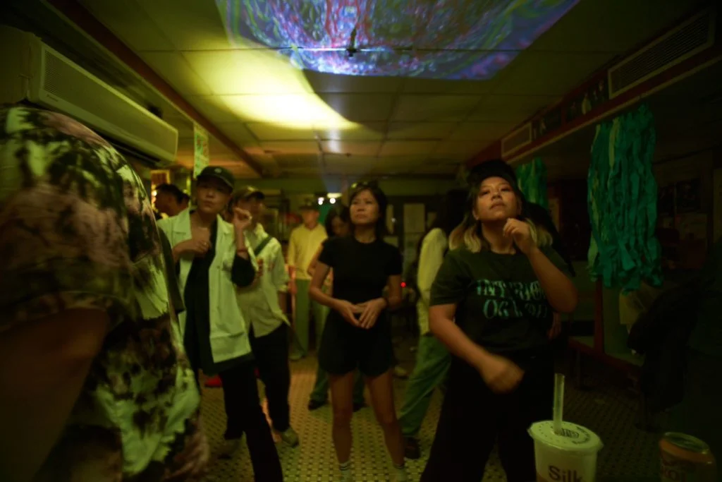 每周四晚上八至十點,穿越油麻地的白背心阿叔、性工作者、煩躁的果欄工人,便會看到一幀奇景:數十個作Y2K或暗黑打扮、紋身穿環的青年散落十字路口,對着在cafe內的DJ所放的節拍搖頭舞動。這是Good Kid Bad Students(GKBS)早前持續約六個月的計劃。本來他們租了一個鐵皮排檔,開放DJ設備,讓感興趣的人「跟機打碟」,每人輪流玩十五分鐘;後來因食環稱牌照限制排檔經營時間到晚上八時,他們就把設備移至旁邊的cafe裏,直至數個月後因不敵投訴,最終停辦。