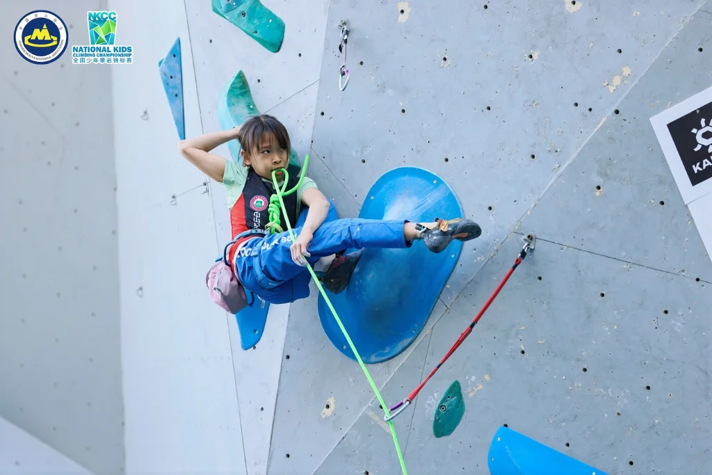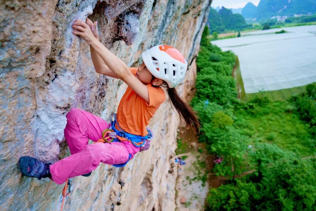 去年三月,她挑戰廣西陽朔「中國攀」時,一度陷入恐懼低谷。「中國攀」長三十一米、仰角三十度,被譽為「頂尖攀石者的試金石」。成人需要完成七十個高難度動作才能到頂;而受限於身長和臂展,小朋友則需要完成一百多個動作,難度更高。