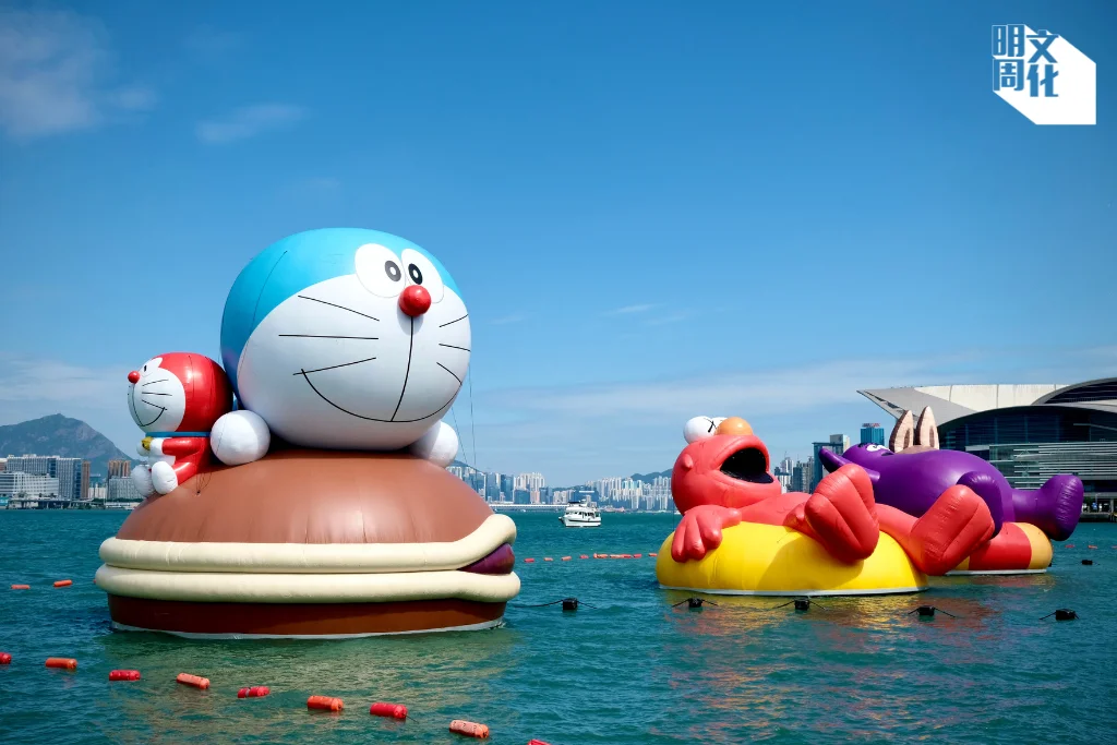 滑嘟嘟、多啦A夢,LABUBU、ELMO登陸維港,四大充氣雕塑長逾二十米,將於十月二十五日至十一月一日一連八日,浮在金鐘添馬公園對開海域,供市民打卡拍照。