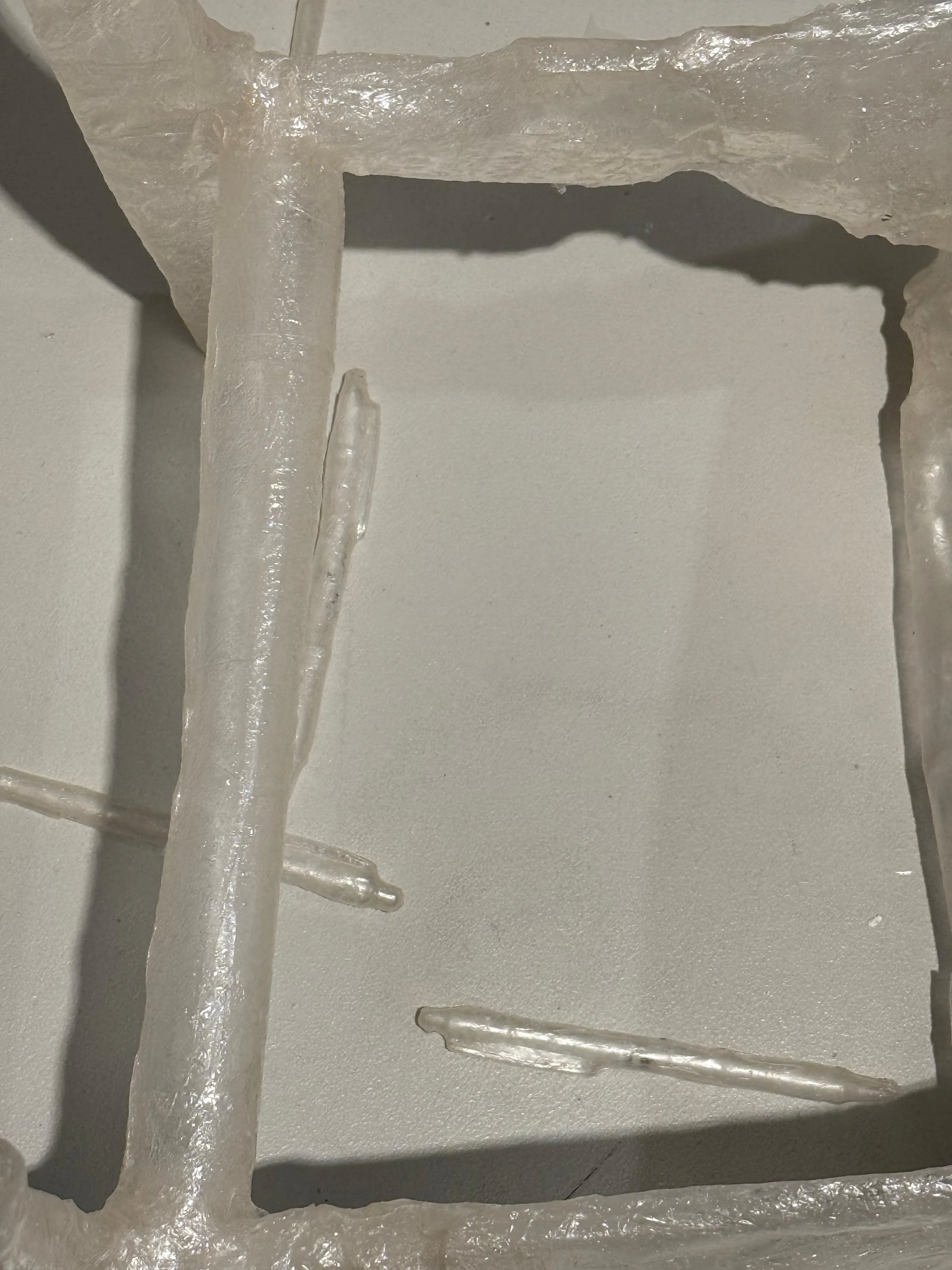 碌碌藝術家IG,看見她限時動態貼出她家的真實樣子,像劏房般極狹小的空間,她就在這裏創作這件作品。她進一步寫:「糯米紙因水塑成了家的模樣,房間濕氣為80%,為我家的誕生中位值。結構逐漸瓦解,離合,重構,形成新的形態。」