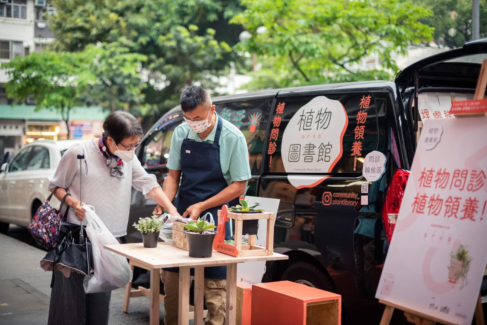 「彩紅」、「彩綠」是婆婆最近由「植物圖書館」領養得來的植物,雖名叫圖書館,但沒有書本,也沒有實體店,那其實是由南豐集團「世界之約」和 One Bite Design Studio 合作的社區項目,向公眾徵集植物,再轉送有意種植的二十間新蒲崗地舖店主,望以植物連結社區,形成一個種植網絡。四、五月期間,隔個周末,他們會出動流動植物車,駐場植物醫生為街訪解答各類關於植物的疑難雜症。