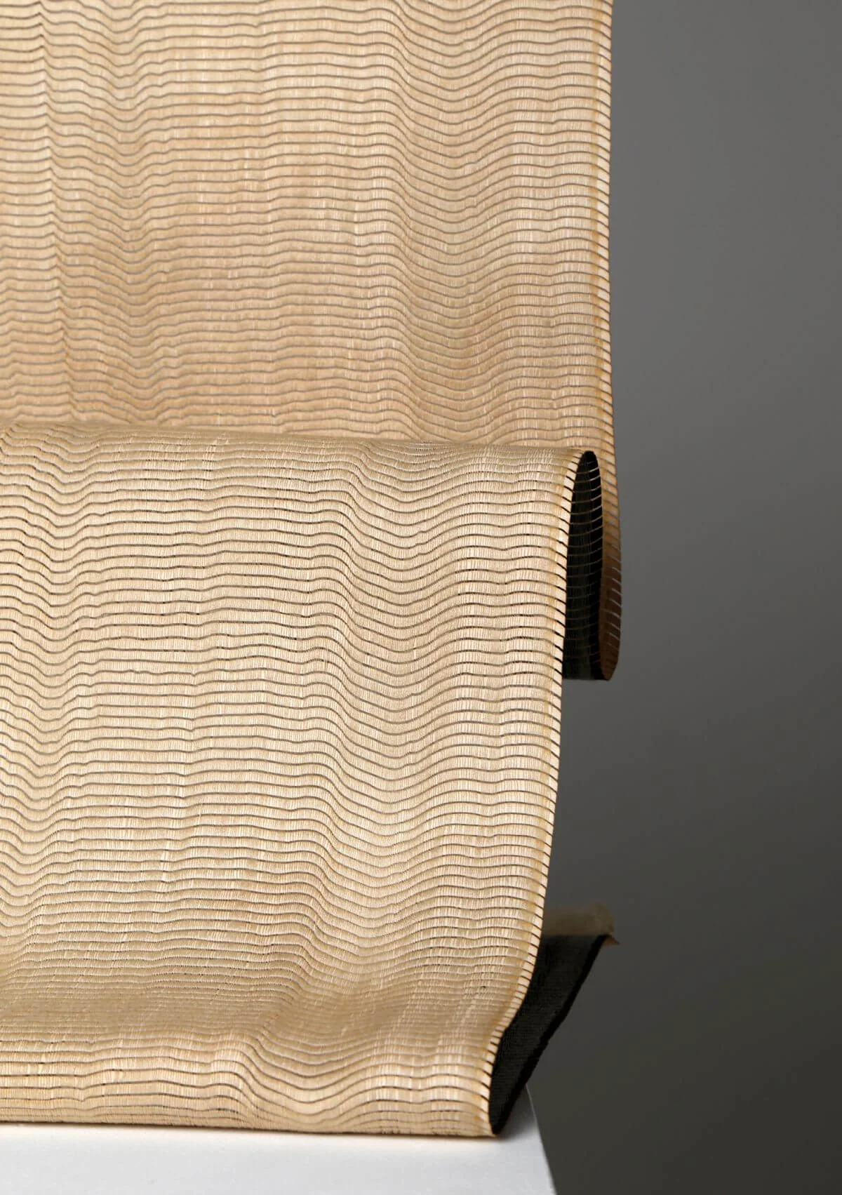 遠比起趟門、屏風更輕巧、靈活,布簾更適合於搭建臨時空間區上時大派用場。來自德國斯圖加特藝術學院Isabella Braunreuther憑A Softer Wood,勝出ein & zwanzig新銳設師比賽,因此得到在Tortona 設計區展出的機會。這是她的碩士研究項目,主題是探究如何將木材運用在紡織品設計上。