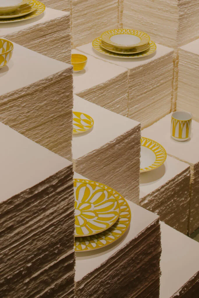 今年六月米蘭設計周,Hermès又再回到了La Pelota,搭建了四座塔樓為臨時館,它們明明是以粗獷主義風格的水塔建築為藍本,卻出乎意料地予人輕盈甚至帶點活潑的感覺。臨時展館以梣木搭建,表面覆蓋了色彩繽紛的半透明紙張;如此一來,柔和而明亮的光線,就能由內而外地輕輕透出來,使塔樓彷彿會發光一樣,吸引人們探身而進,看個究竟。