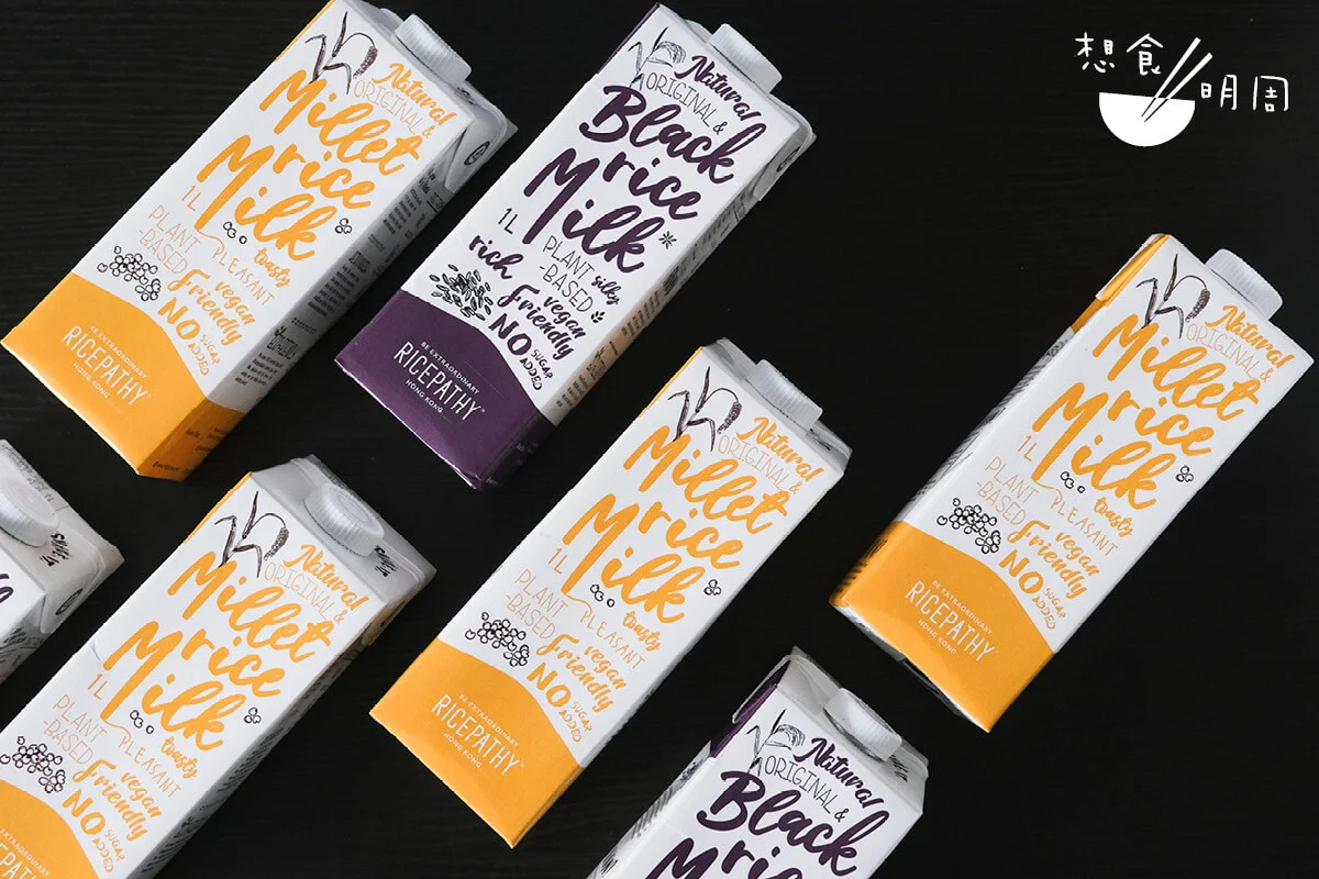 從十年前的杏仁、大米奶,到這兩、三年風行的豌豆奶,現代歐美人因為乳糖不耐症、動物權益、可持續消費等不同原因,漸漸由牛奶轉投植物奶的懷抱。這股熱潮亦使不少亞洲新進品牌加入戰局,因為市場現存產品多為歐美人而設,亞洲人會有不一樣的審美觀及營養需求。就像新加坡品牌OATSIDE,選用澳洲燕麥片,做出亞洲人喜歡的堅果香及濃稠感,並標榜能跟茶、點心等融合,開拓植物奶的能見度;也有像眼前的RICEPATHY,把華人的健康飲食法則放在心上,用市場不常見的有機小米及黑米,分別做成兩款植物奶。