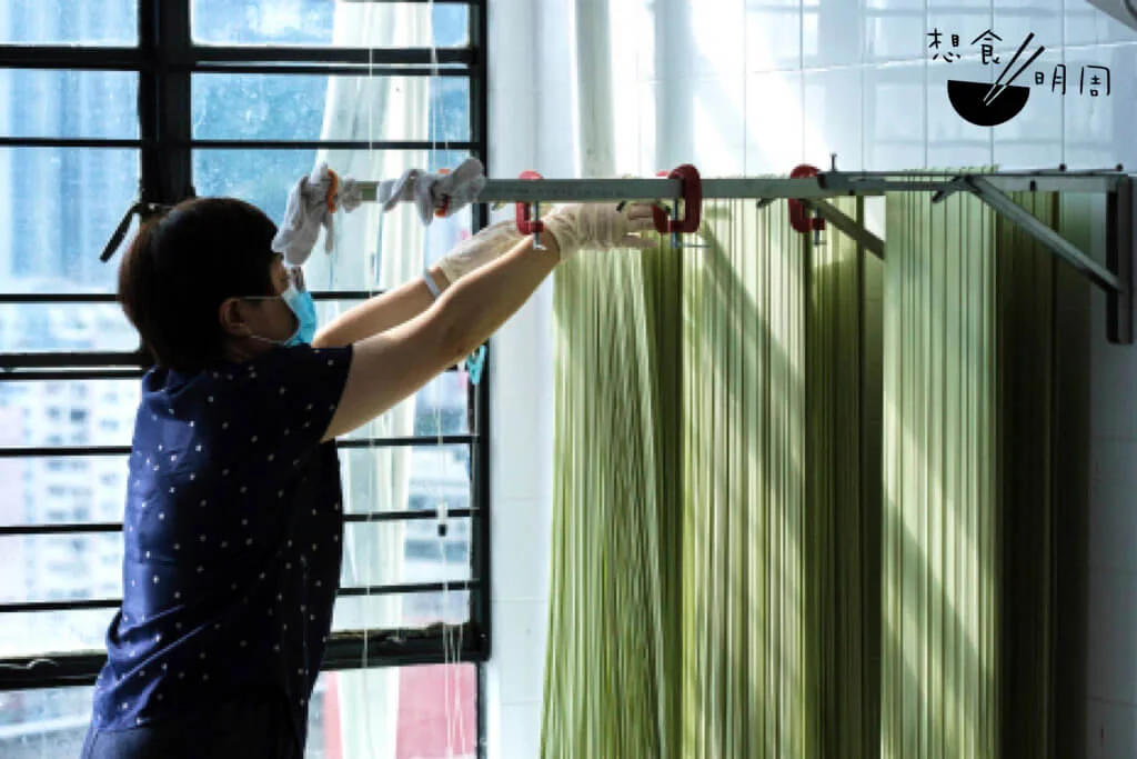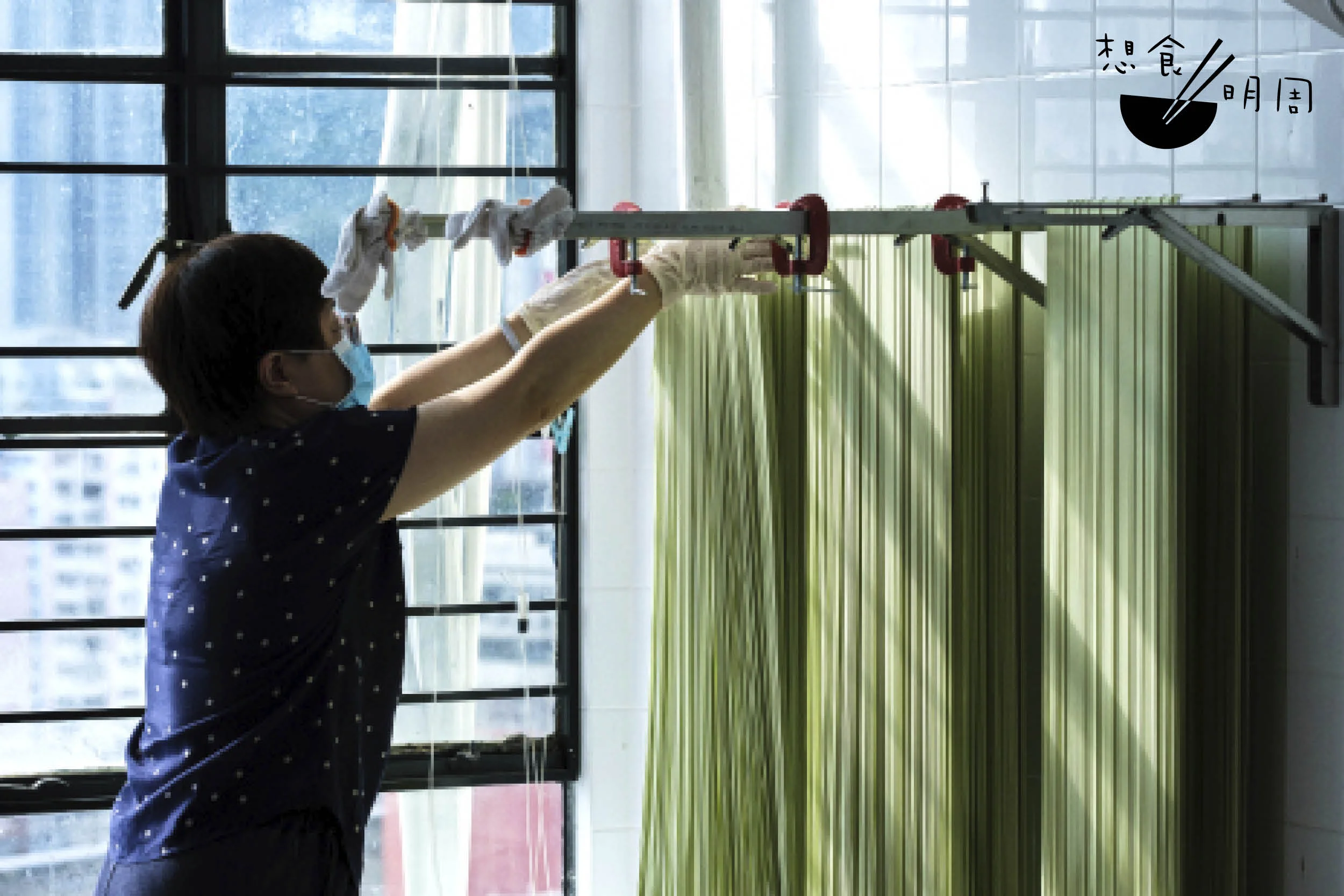 對於造麵,Daisy及Jo本來是一竅不通,以為買了座麵機就會水到渠成。幸得造麵高手指點,才知道麵條要反覆捲壓,口感才會爽彈;在工程朋友協助為機器加添捲軸等部件後,現時麵糰會捲覆三次才切割成麵條。然後掛在牆邊風乾,最後才包裝入袋。