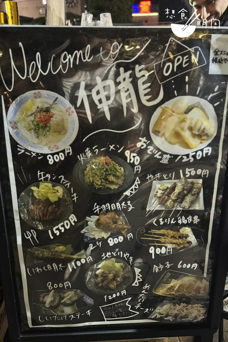 伸龍現時的畠店主是創辦人的遺孀。她回憶道:「以前我們只賣燒鳥(即烤雞串)、天婦羅等;大約十年後,旁邊的博多運河城開幕,這區才變得熱鬧起來。」大約於一九九六年,中洲屋台區終成為當下觀光宣傳照的模範區,吸引大量的遊客前來探訪,而伸龍的菜單亦隨時代進化。「曾經有段時間,很多顧客詢問豬骨湯拉麵,我們就把拉麵、餃子等加進主餐牌。」如其他的屋台般,伸龍特別照顧客人的喜好與需要。可知道,「炒拉麵」是過去某間屋台為炎熱天氣裏無法享用湯麵的客人所設計,而伸龍的炒拉麵則利用豬骨湯去蒸煮拉麵。這個進化版本可充分體會到屋台為客人設想的心思,因此特別留得住大家的胃口。