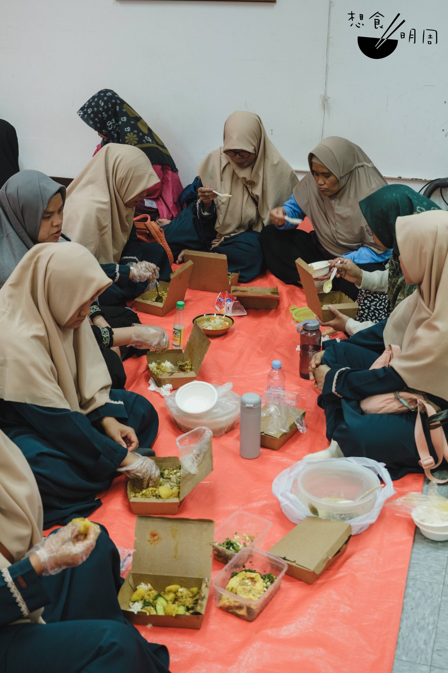 在六樓,一羣印尼籍穆斯林也回到活動室準備開飯。
