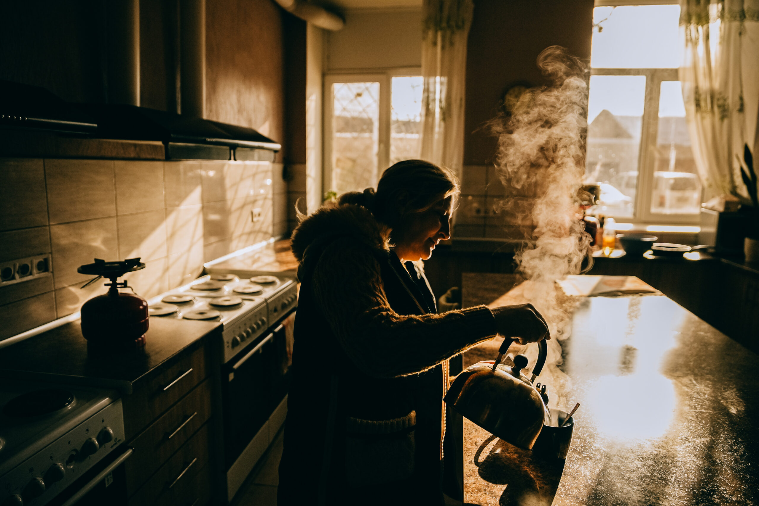 星期日早上,晨光灑進大樓,廚房沐浴在陽光之中。當日大樓停電,慕拉雪琪娜(Yuliia Murashkina)正在準備早餐,她身後的電磁爐卻因無電而停用,只好以石油氣爐烹煮班戟,陽光成為她唯一能依靠的光源。