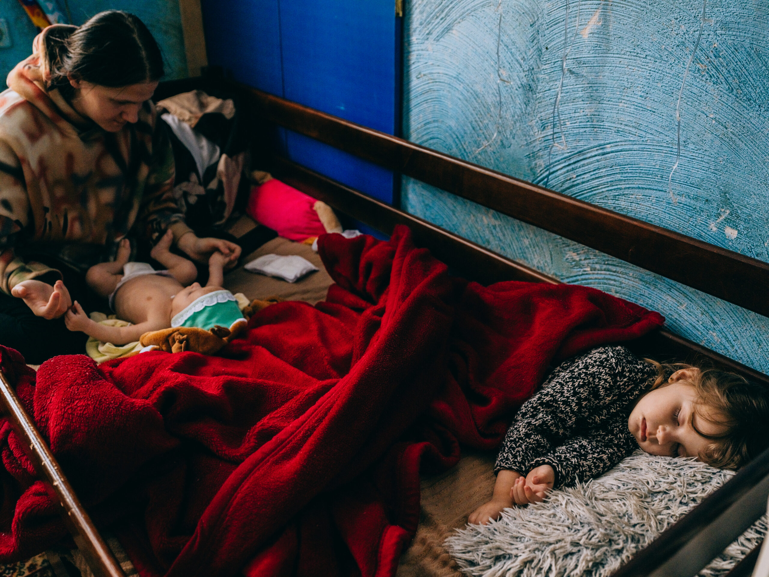 克拉夫琴科(Anastasiia Kravchenko)同樣住在大樓之中,她同時是這個避難所的管理員,見證住在裏面的孩子成長。她說:「有很多家庭帶着小朋友來到這裏。以前我要把他們抱在懷中,現在他們已經長大了,可以四圍奔跑。時間真的過得很快。」