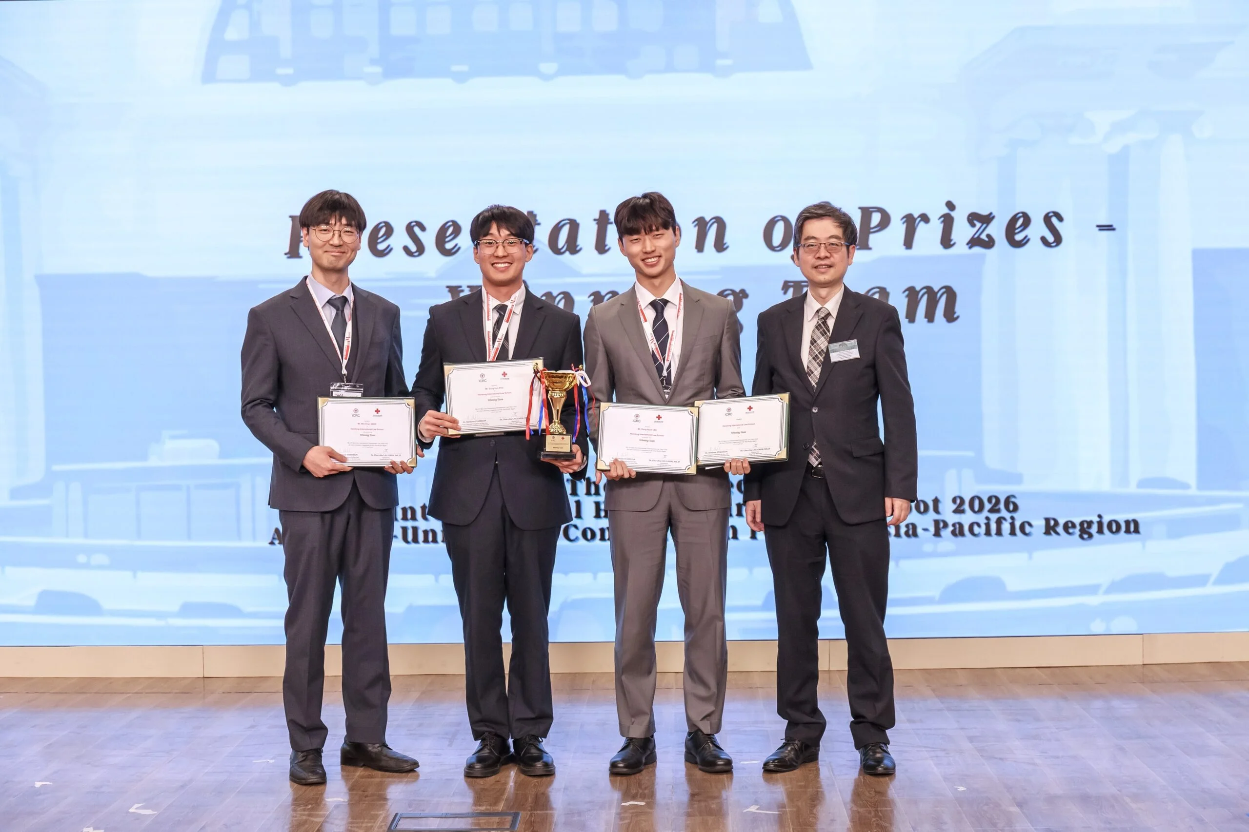 經過四日激烈的模擬審判,最終由韓東國際法律學院脫穎而出,榮獲冠軍殊榮;亞軍則由立命館亞洲太平洋大學奪得。來自韓東國際法律學院的Mr Dong Hyun Lee憑藉出色表現,獲頒「最佳辯手獎」。然而,對所有參加者來說,比賽的意義遠不止於勝負。