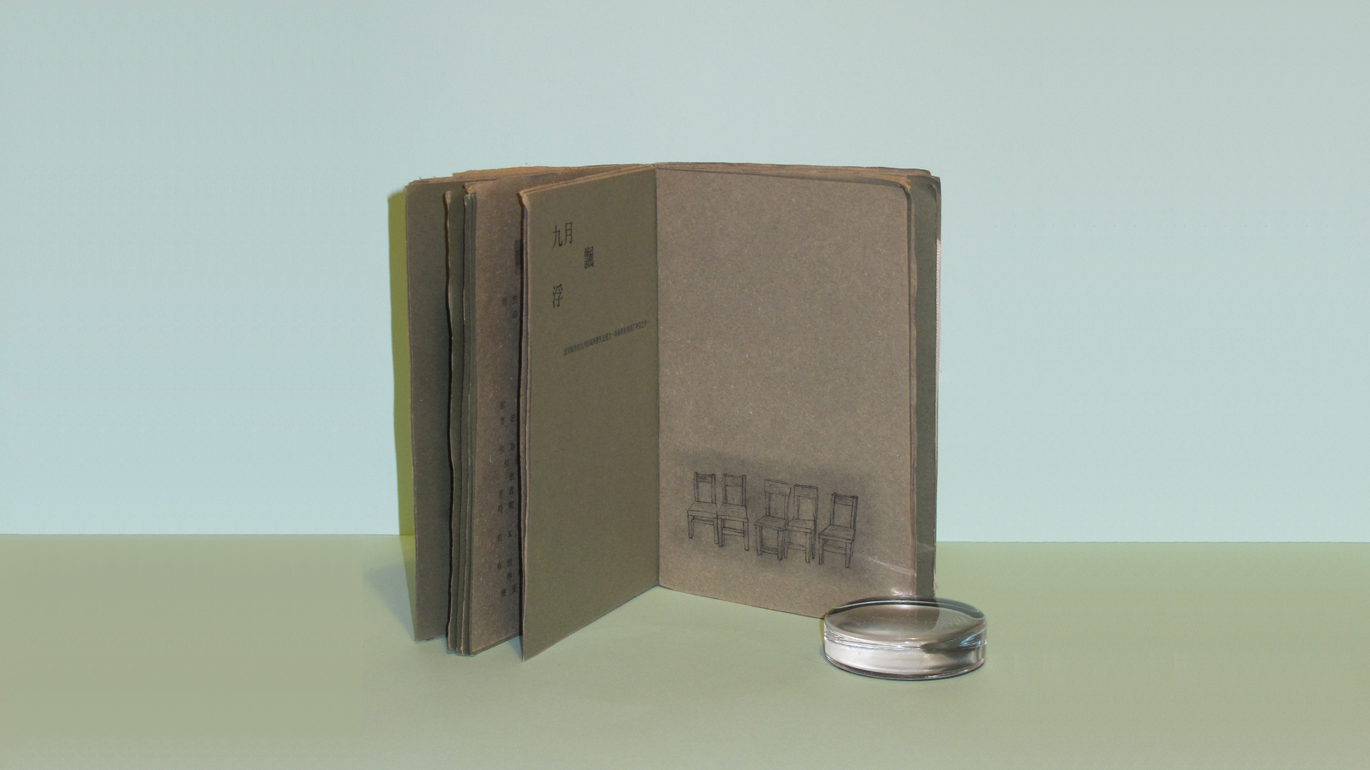 寫作的人常有奇思,希望出版一本本異想的書,不但內容獨特,外貌也出眾。我手邊恰好有一冊謝曉虹的《月事》,也是筆記,卻是關於一座城市的筆記。看來只寫空間,其實也包含時間。因為月事就是每個月發生的奇異的事。這本不是正統的毛邊書,但仍歸入毛邊書的隊伍,因為整本書都由手工訂訂糊糊,一頁闊一頁窄,書紙的顏色不同,間雜成卡紙一疊,而色彩倒相當協和,綠豆色或炭色上印黑色,真是以自然體與機械體開戰。一本線裝的書頁,偶有突頁,糊上一幅插圖,忽然又出現一條白色包紮傷口的彈筋布,一路走來真要手眼並用,有點不容易,就是怕你走馬看花,而且走累了,書中有幾把椅子,可以稍息。