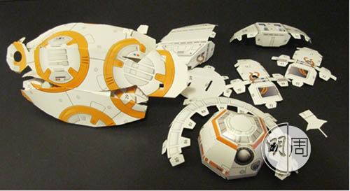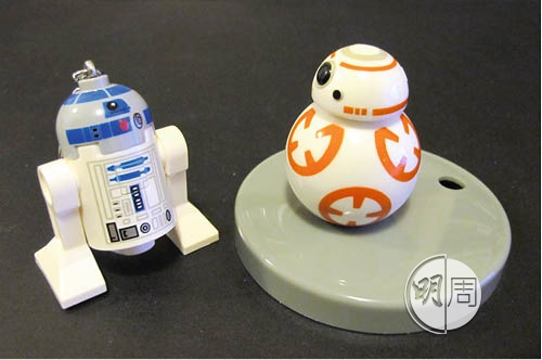 《星球大戰》的電影還沒有公映的時候,玩具店裏已經有BB-8的公仔面世了。這件活動機械人以靈活度取勝,走路不是用腳一步一步走,而是溜冰般滑行,甚至能夠用軀體打滾,在電影中表演下樓梯。我最初見到的公仔身高約十吋,像個大肚子酒瓶,雖然趣緻,但我覺得它體積稍大,又是塑料,就等待其他產品,因為這種公仔,必定有許多版本,陸續有來。不到一個星期,果然有新發現,同樣的體積、同樣的包裝出現,我還以為是上次見到的同一樣品,卻發現價格高了一倍。不會忽然炒高到如此快速的地步吧,是我不夠仔細,第二批公仔原來是電動的,貨盒之間的一部小電視播放着電動的活物,在草地上翻滾,比小狗還活潑。我不買電動玩具,所以不動心,而且給自己另一藉口:不外一直翻滾,豈不單調。看過電影後,機械動物公仔當然多起來,我終於選了一款,很古老的品類,用卡紙動手摺拼。我喜歡動手做,懷舊的手工自有它的吸引力。就這款吧。回家立刻打開工作。盒子裏有一本書,介紹星站的各種機械人,很好。附三個機械人的砌配法,就是把圖形邊緣外的翼片與另一圖形外緣的翼片接砌,的確是傳統的方法。盒內其他組件就是印在卡紙上的圖樣,可以輕輕推出。我的確做過這類手工了。