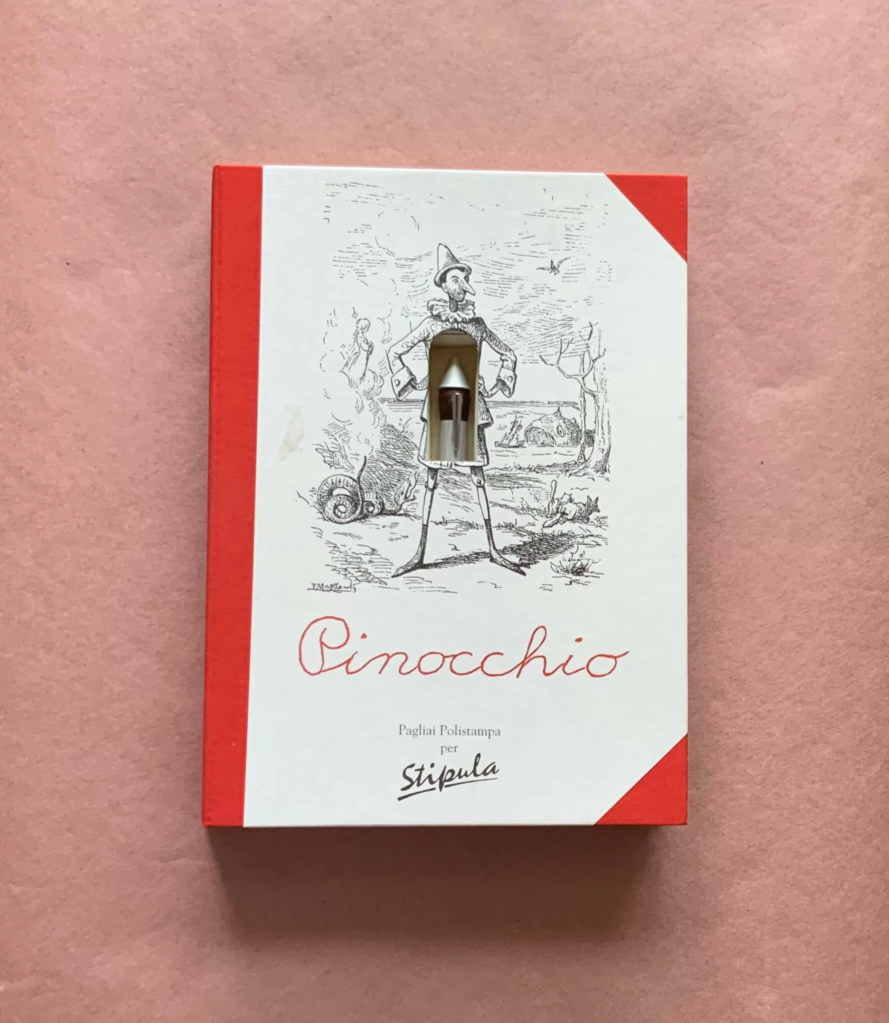 這本書與筆合一的《木偶奇遇記》於2002年出版,限量珍藏881套(取其原書於1881年初次在期刊刊登之意),我的這一套編號136。這枝筆設計的妙處在於雖然模擬木偶的造型,卻仍然保持一枝筆應有的形狀,看上去自然而不牽強。那枝鋼筆的筆筒材料是仿檀木硬膠(ebonite),藉此表示木偶的真身;圓錐形的啞銀色合金筆套則模擬了初版由Mazzanti配圖的木偶帽子(格必多用花紙替木偶做套裝,用樹皮做鞋;那頂帽子的原料卻是麵包);至於那明亮金屬的筆夾,當然就只能視之為木偶的鼻子了。只是在這說謊全球化的年代,誰還會去關注畢拿巧的鼻子是長是短?人人都自顧不暇了。至於那筆嘴,倒是明碼實價的18K金;我曾經用這枝意大利鋼筆在翡冷翠的IL PAPIRO拍紙簿上面抄寫中國的《詩經》,一邊懷疑這枝筆對自己的奇遇會有什麼樣的感想。大概它會想到格必多對畢拿巧說的話:「我親愛的孩子,我們永遠不能預知處身何種境地。這是個不可理喻的世界。」