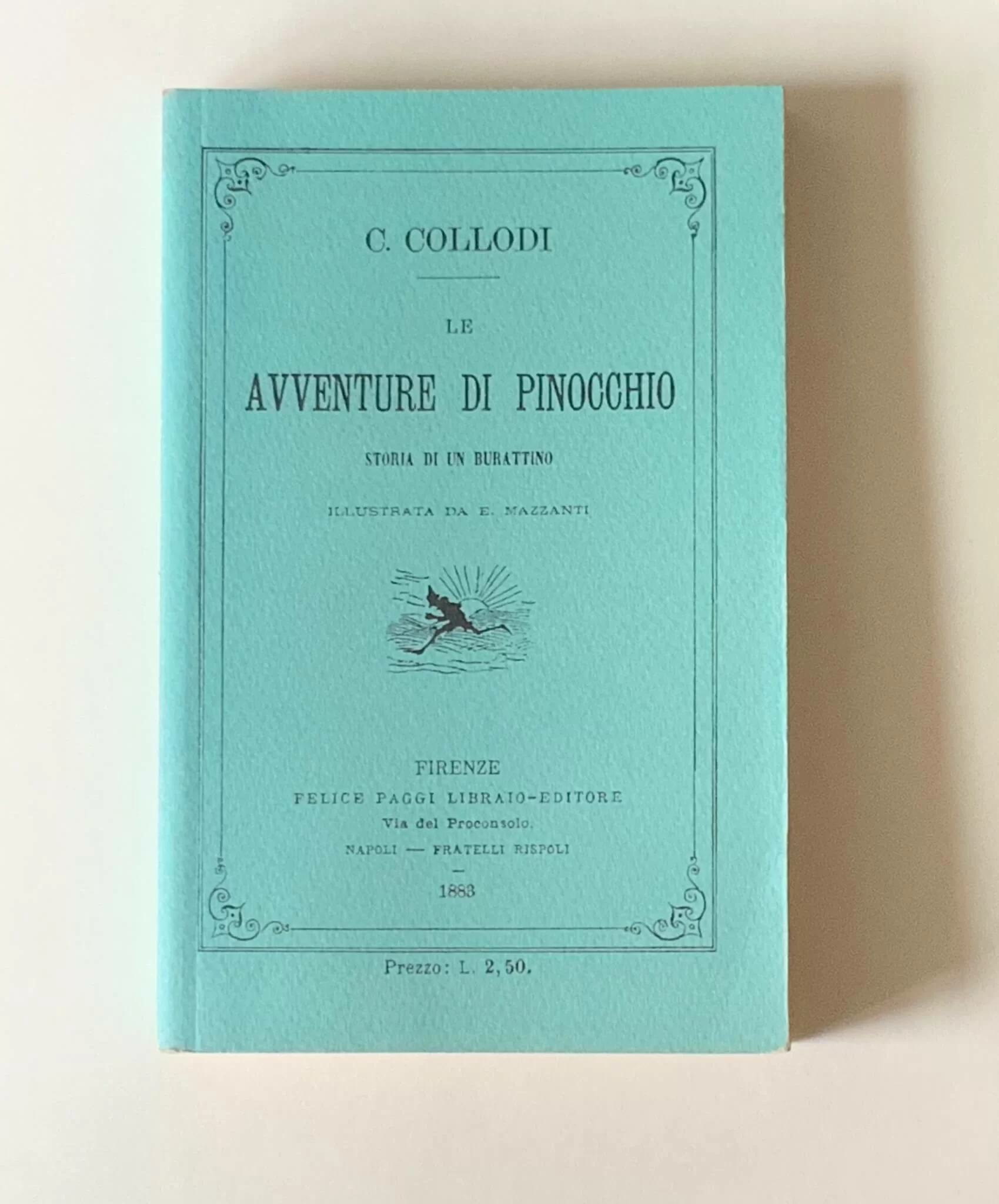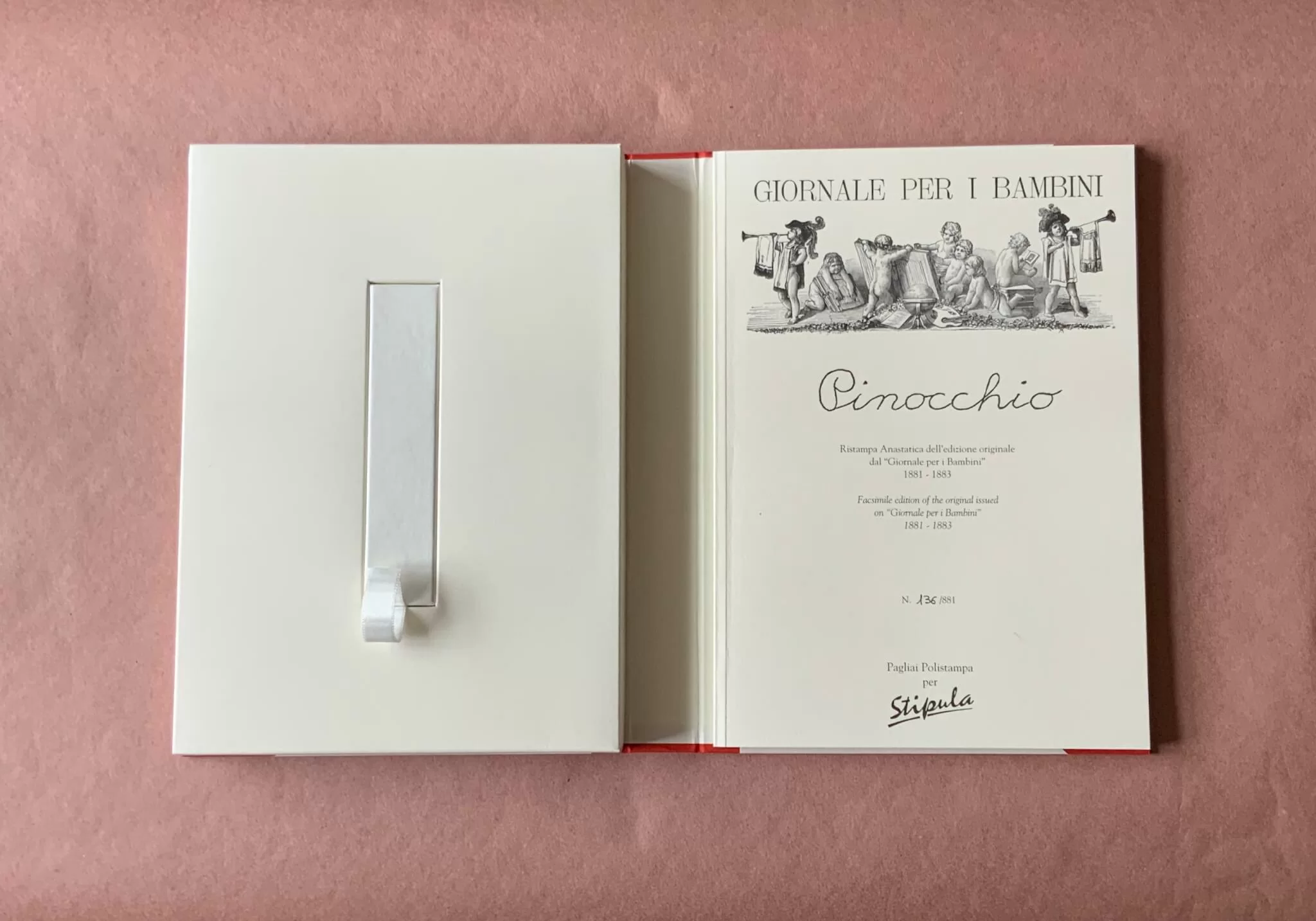 這裏的一本《木偶奇遇記》,特別之處是書與筆結合為一,由意大利的Pagliai Polis-tampa出版社和Stipula精品鋼筆製造商聯袂出品,堪稱一奇。封面也就是個開了口的筆盒子,可看到那鋼筆露出在木偶畢拿巧的身上;打開了封面,裏面是《木偶奇遇記》當年最初在《兒童報》(Giornale per i Bambini)的分期連載影印本。《兒童報》其實是一本周刊;卡洛哥羅狄(Carlo Collodi, 1826–1890 ) 應主編之邀,從1881年7月7日至1883年1月25日分期連載,但是並非每星期都有,而是斷斷續續地完成全書。由於大受小朋友歡迎,刊登之後數星期立即就出了單行本。起初在兒童期刊連載之時本名《木偶的故事》(La Storia si un Burattino),到了1882年2月16日中途改名叫《木偶奇遇記》,單行本也就沿用為書名。能夠一睹當年原汁原味的期刊連載,對於畢拿巧的擁躉自是一件賞心樂事。就像西西的讀者,會以擁有多個不同版本的《我城》為榮;但是如果誰能藏有一本由陳進權文友編印的《我城》報刊連載影印本,那才算是得到了真本了呢。