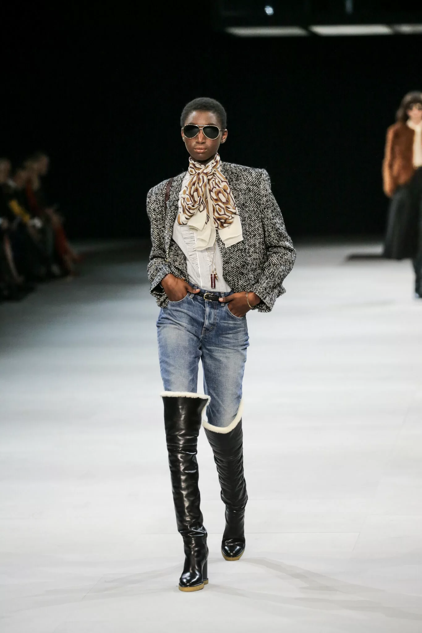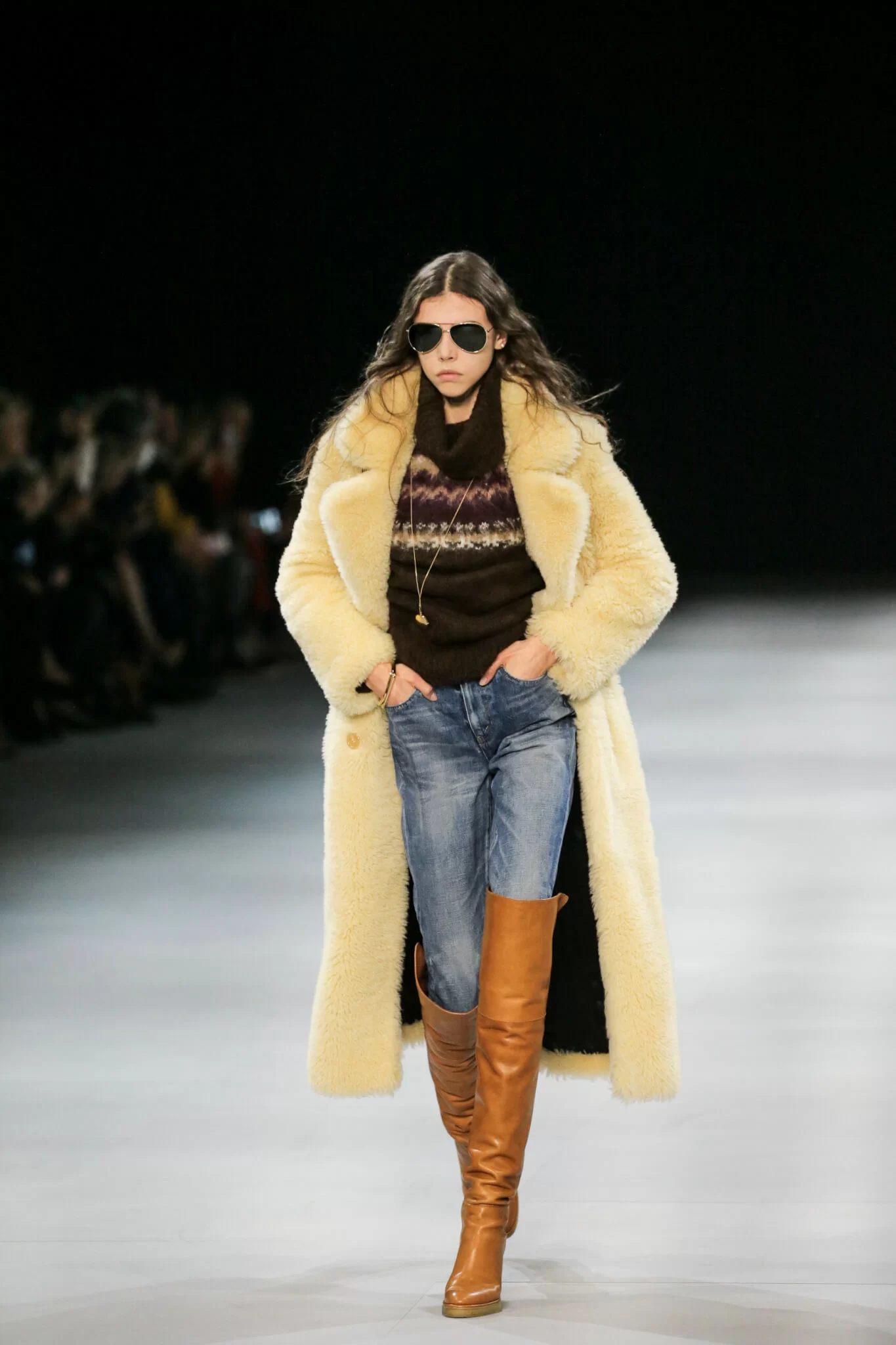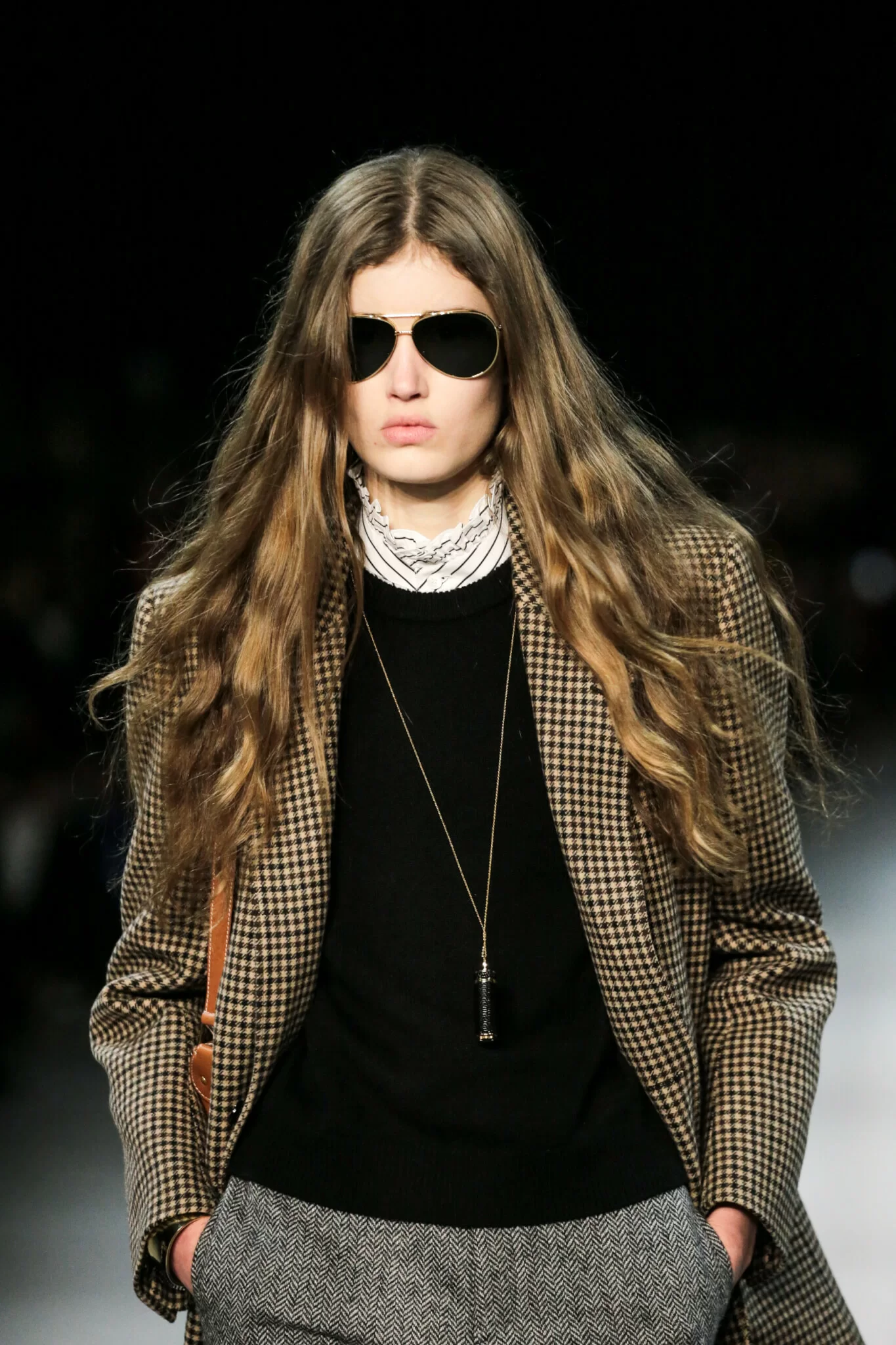當大家對於Pheobe Philo的Old Celine念念不忘時,Hedi Slimane特地跳過這段時期,回到七十年代的Old Old Celine。不過,他至少聽到了大家的聲音,因為纖瘦、搖滾、叛逆和清一色黑絕對是不屬於Celine的。