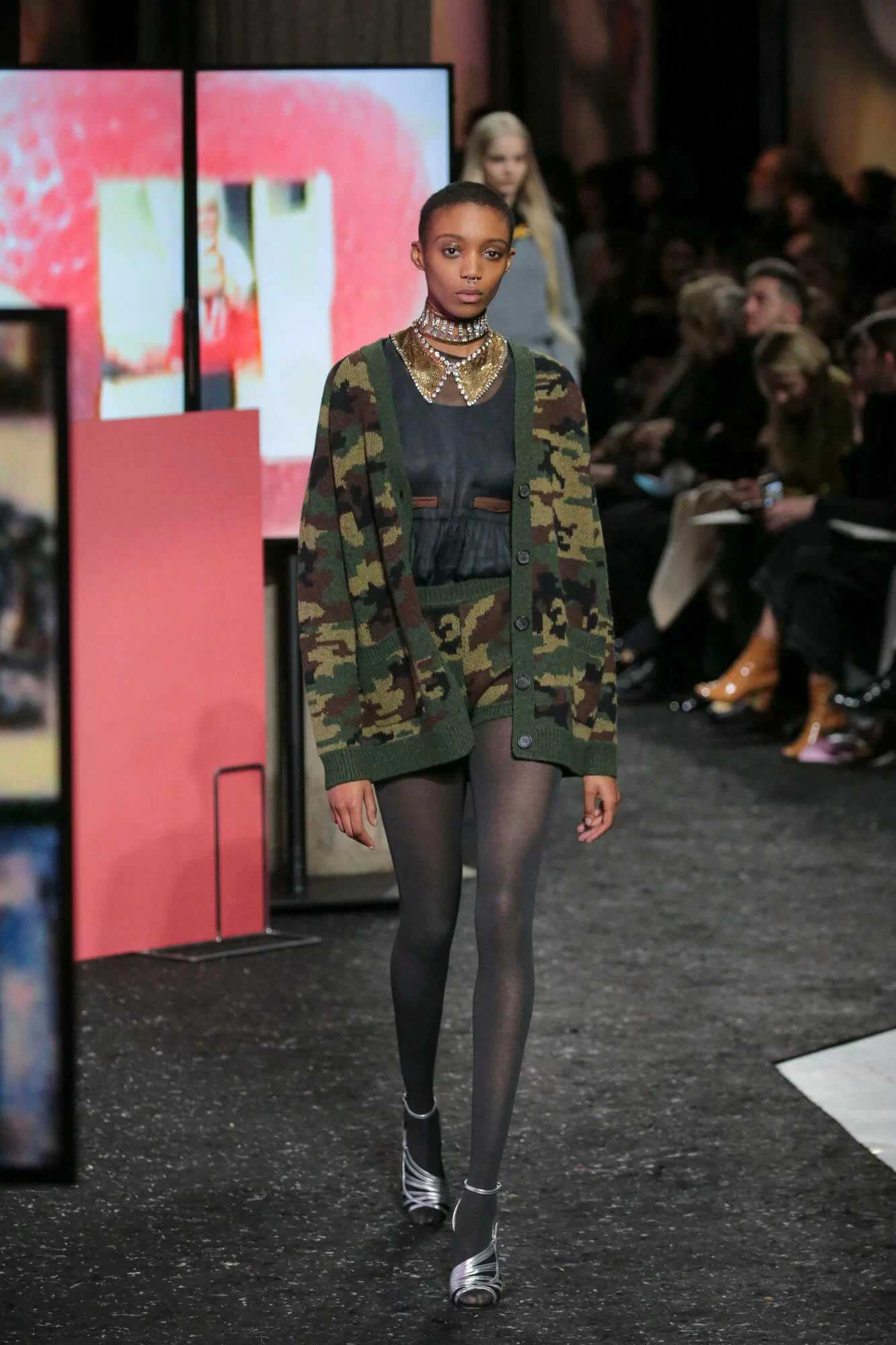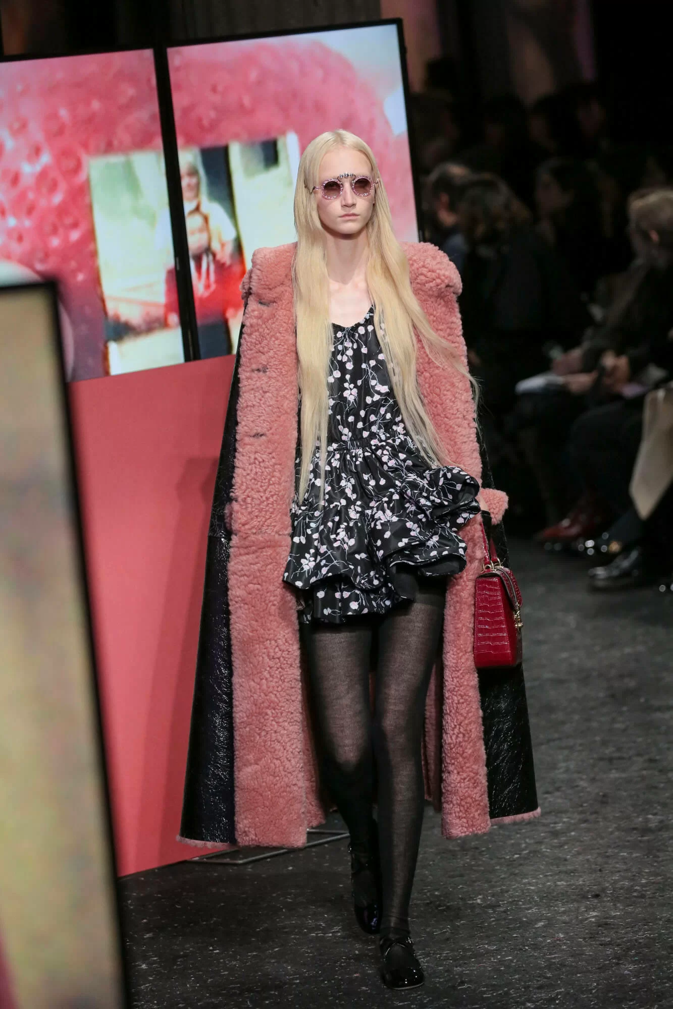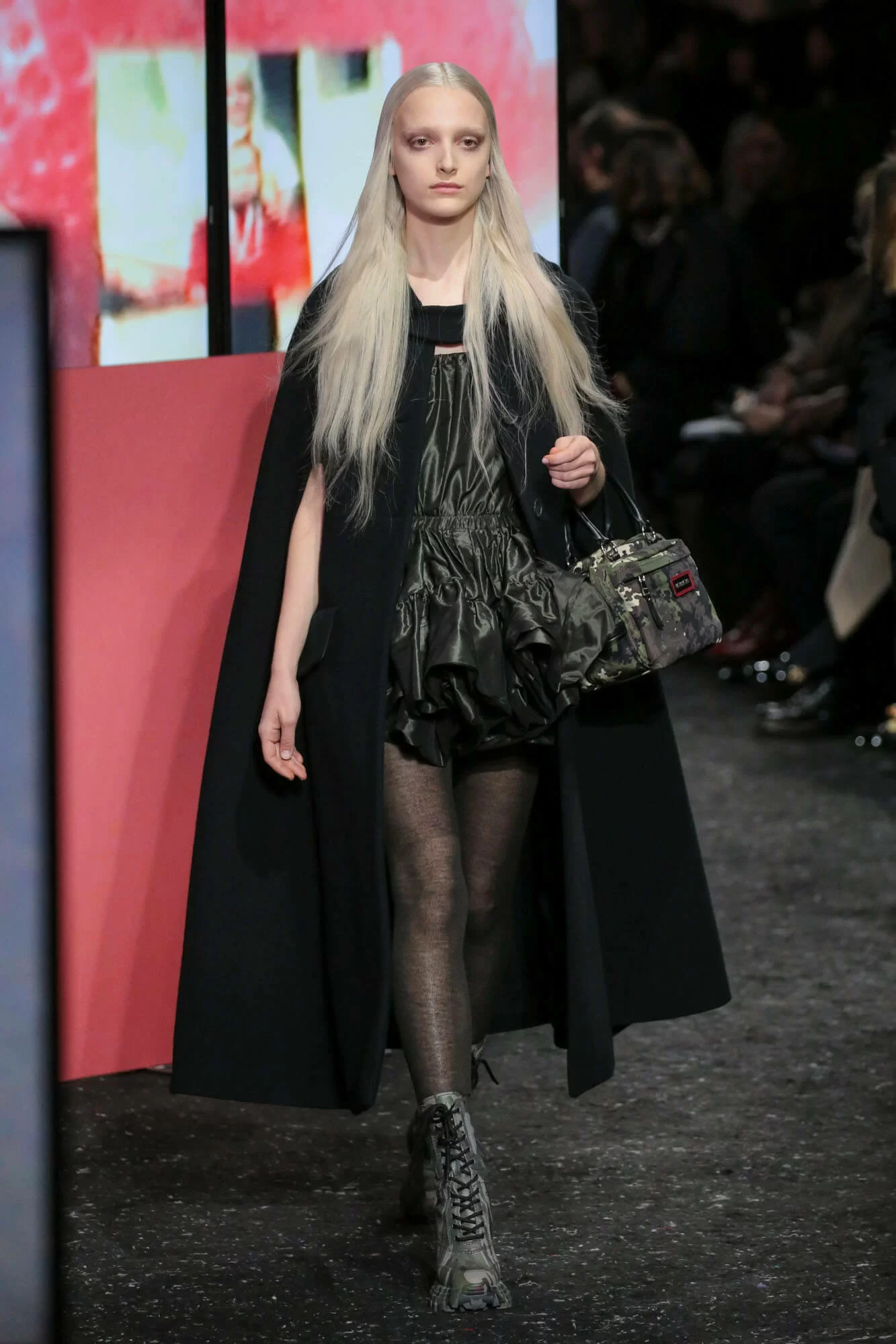 她們穿上了軍褸斗篷、迷彩大褸、軍靴,象徵對世界的反抗,卻同時又有花花透視恤衫、天鵝絨大衣、蝴蝶結、Mary Janes等細節,代表了對世界的希望,這一剛一柔集於一身的Miu Miu girls,正是Miuccia Prada對現今女孩的詮釋:她喜愛童話,卻活在現實。在這個艱難的時代,誰人不是呢?