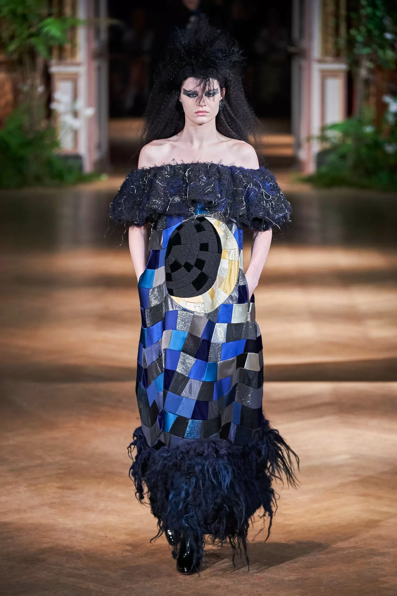 Viktor & Rolf讓Claudy Jongstra的可持續毛氈回歸大自然,織出太陽、月亮、星星、蝴蝶和貓頭鷹等圖案,有些更在裙子上刻意留下刺繡箍,像是表達手工的過程。毛氈的自然觸感是Claudy Jongstra的特色之一,她將羊毛織成漸變色,或是夜空,或像稻田和岩石。