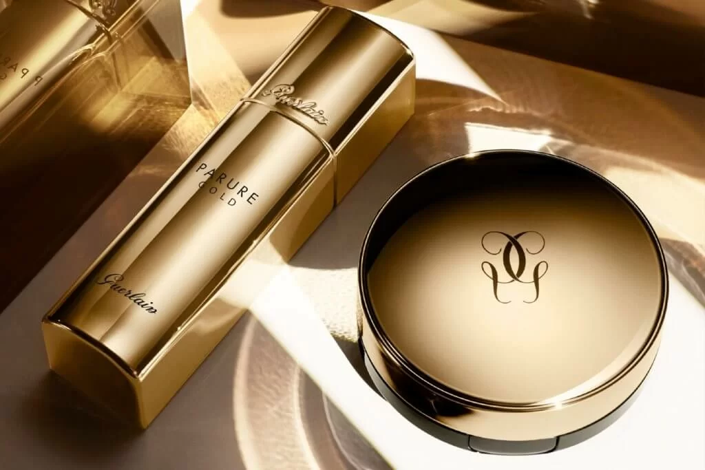 Parure Gold金鑽修顏粉底系列,換上金色裝潢,有種奢華名貴的感覺,提升臉部氣色,配方內亦包含金色色素,明亮面容。金鑽修顏粉底液和氣墊粉盒有防曬功能,亦能營造出有明亮面容的效果,像金鑽一樣。另外亮肌粉餅持妝力強,可長達8小時。配方蘊含金色色素更注入24K金,煥發閃金亮釆,巧妙反射光線,讓臉龐籠罩於明麗之中。