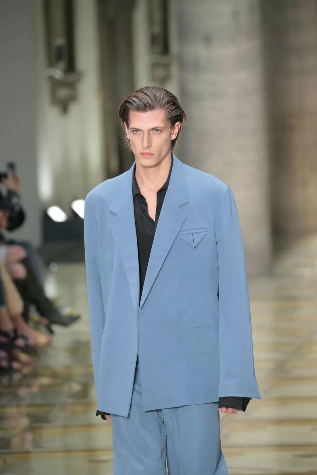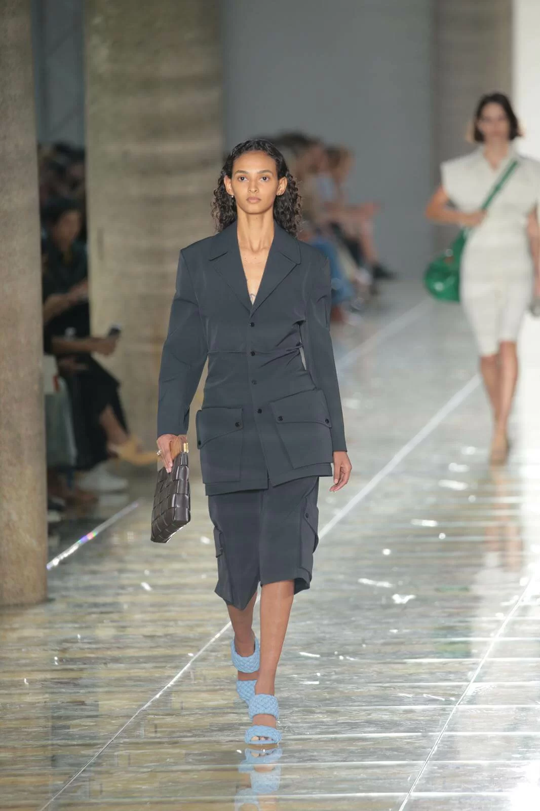 Bottega Veneta向來不是譁眾取寵的品牌,所表達形式是「即時而又直白」,無論從比例、 剪裁、細節至顏色,演繹出設計總監Daniel Lee剛柔並重的簡約美學。這次衣服或配飾的材質和技藝運用上同樣不能忽視,有依舊展現態度的皮革,也有結合古典主義和現代主義的梭織和針織。設計總監Daniel Lee曾提到:「Bottega Veneta 為每一個獨特的個體而存在,為你而存在」,BV這季從大褸、衣服、袋款或配飾也不斷出現「三角形」,彰顯個人化語言,突顯獨一無二的自己。