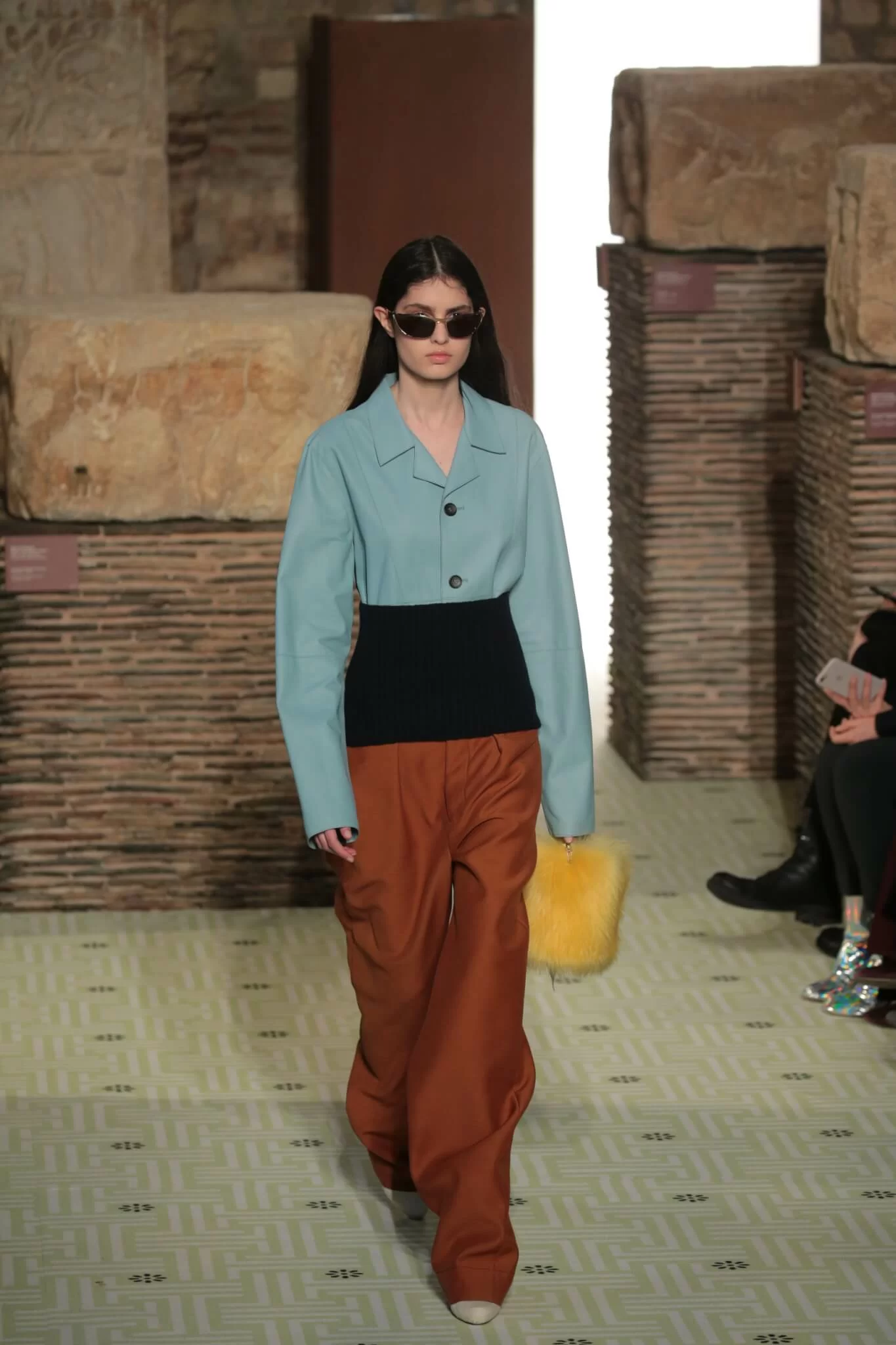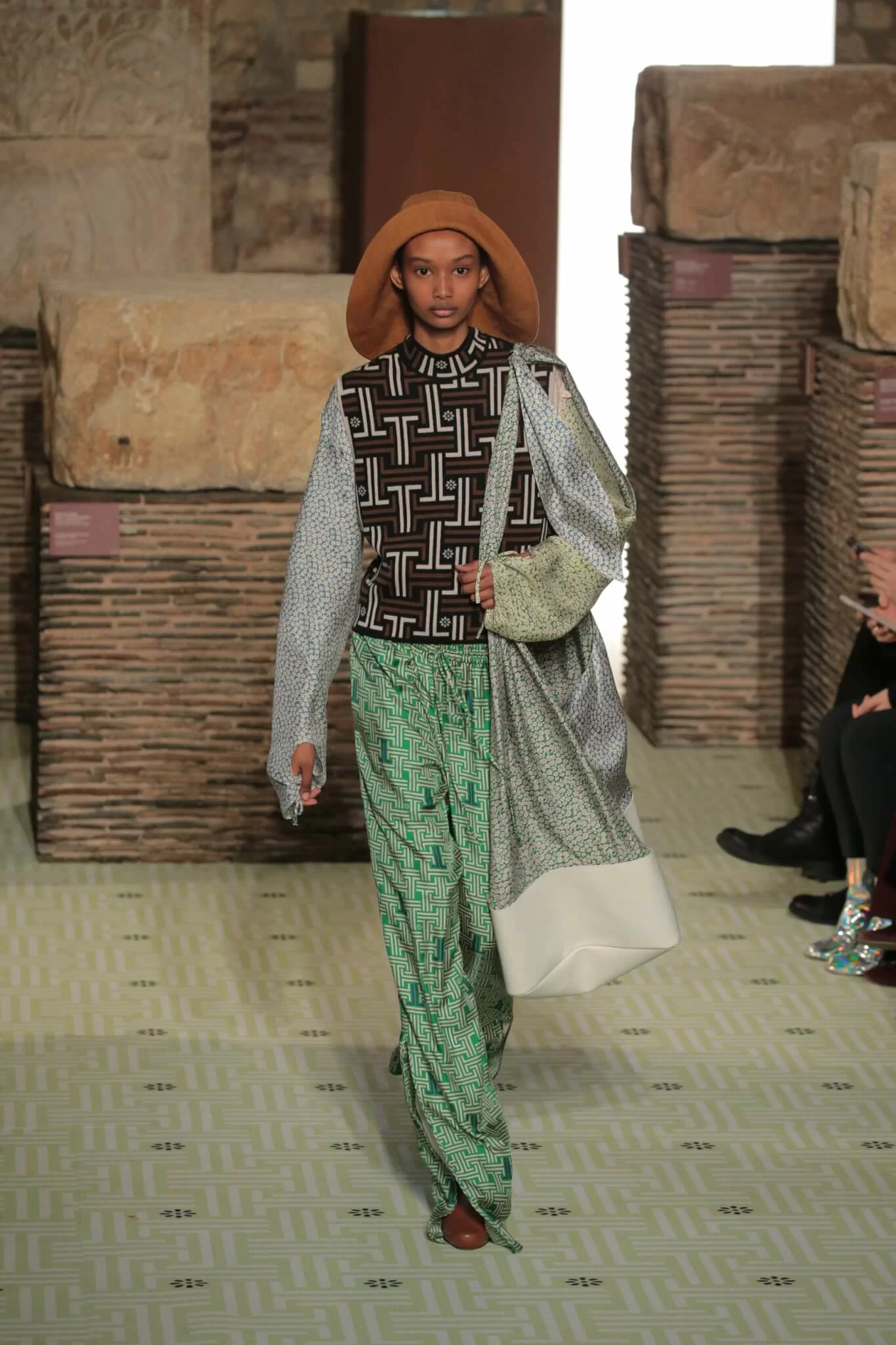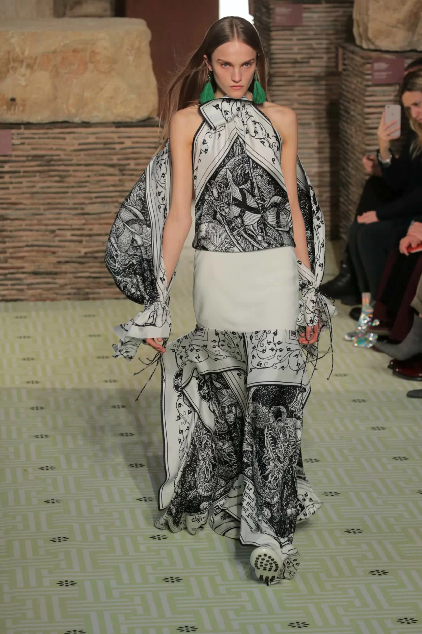 今季2019秋冬選址於巴黎Musée de Cluny博物館舉辦,在浪漫的交響曲中,Lanvin的新形象漸漸浮現。清新的水手風格打開序幕,粉藍色和孔雀綠同時出現在男女模特兒身上,原來這是一場男女混合騷,Lanvin也可以跟中性掛鉤。接著是幾套不同形式的格紋設計,包括田園風格的披肩,或是粗格紋的羊毛大衣。一些卡通畫冊被印於絲質恤衫上,這對Lanvin而言是少見的,童趣的大象是來自於法國漫畫家Jean de Brunhoff的《Babar the Elephant》嗎?隨後還有一些舒適的睡衣、輕鬆暇意的度假裙裝、以及一件男女纏綿的插畫長裙。沒有過多華而不實的晚裝,卻多了實用易襯的日常著裝。