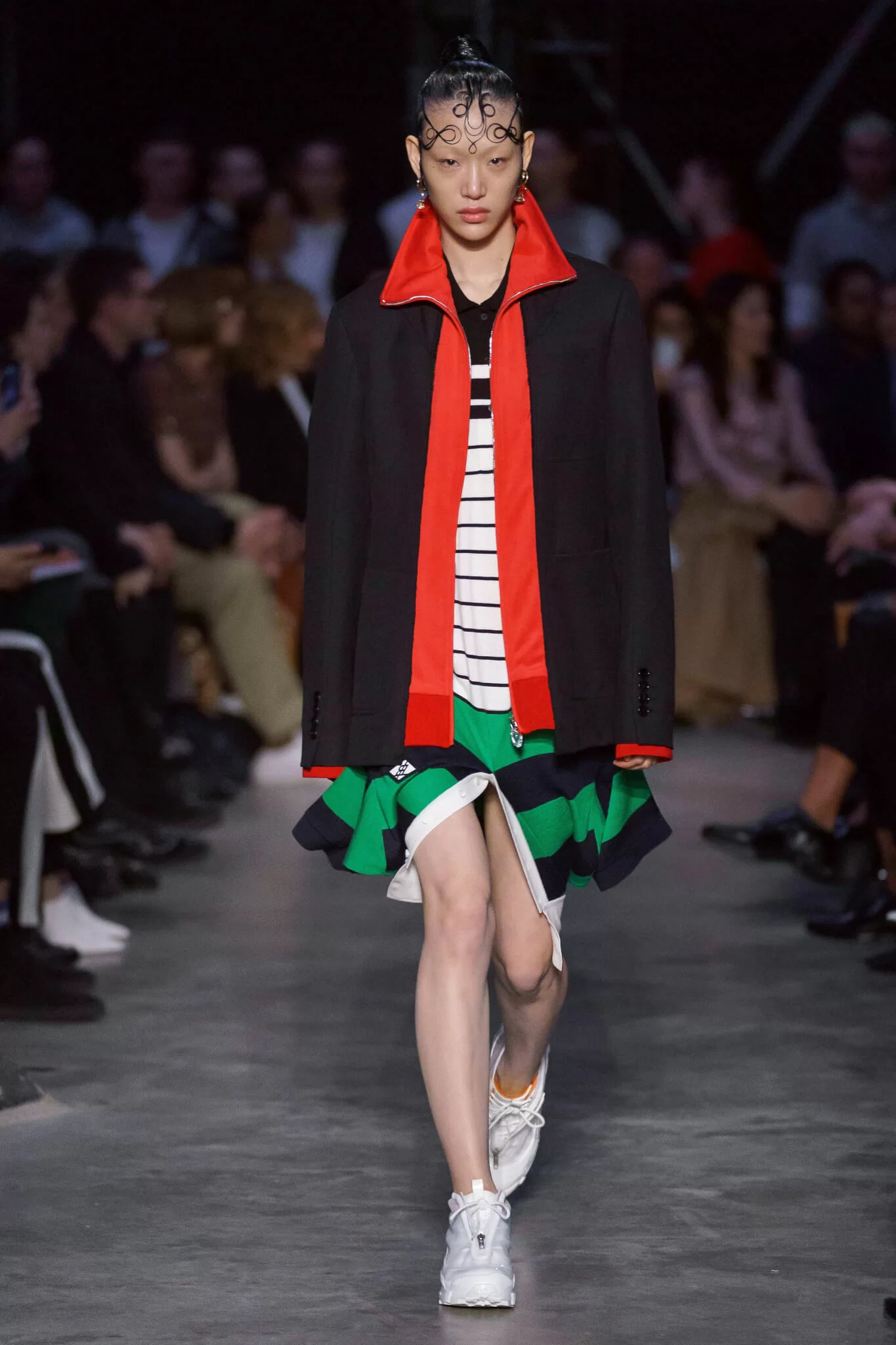 2019秋冬是Riccardo Tisci加入Burberry後的第二場騷,大家難免對此無比期待,畢竟他第一場騷的評價好壞參半。今季時裝騷在倫敦的泰特美術館舉辦,現場被分割成兩個完全不同的場景,一邊是優雅的木製走廊,兩邊觀眾席擺放著舒適的獨立沙發,而另一個場景則為混泥土地的昏暗空間,外圍築起了鋼架,一群年輕人像小混混般在上面攀爬。Riccardo Tisci似乎將兩個空間劃分為兩個種不同的社會階級—社會菁英和普通階級。
