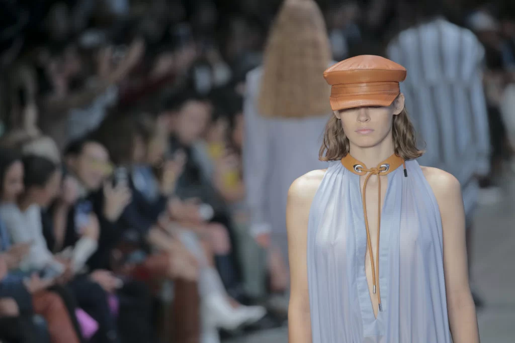 場地天花以白帆裝飾,開場後徐徐撥動,彷彿迎來海風於水上飄揚。飄動的不止佈景,還有系列的衣飾;藝術家Daniel Wurtzel具有流動感的裝置藝術,為Grazia Malagoli送上無限的靈感,今季Sportmax以飄逸通透的面料、有垂感的印花連衣裙,編織出浪漫寫意的感覺。