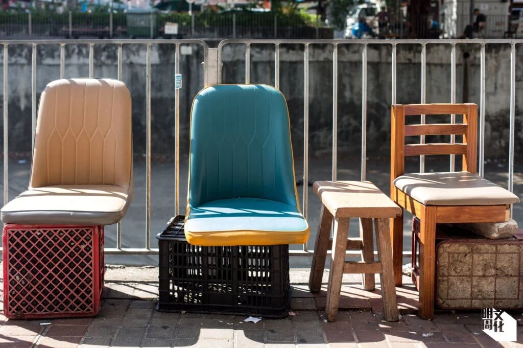 在教育路附近的明渠旁邊,放置了好幾張款式高矮各異的椅子,恰如元朗的混雜多元。據說,椅子的主人是一位尼泊爾街坊,因為家居狹小,於是索性把椅子搬到明渠旁的林蔭下,與朋友聚頭,也讓其他街坊有處歇腳的地方。