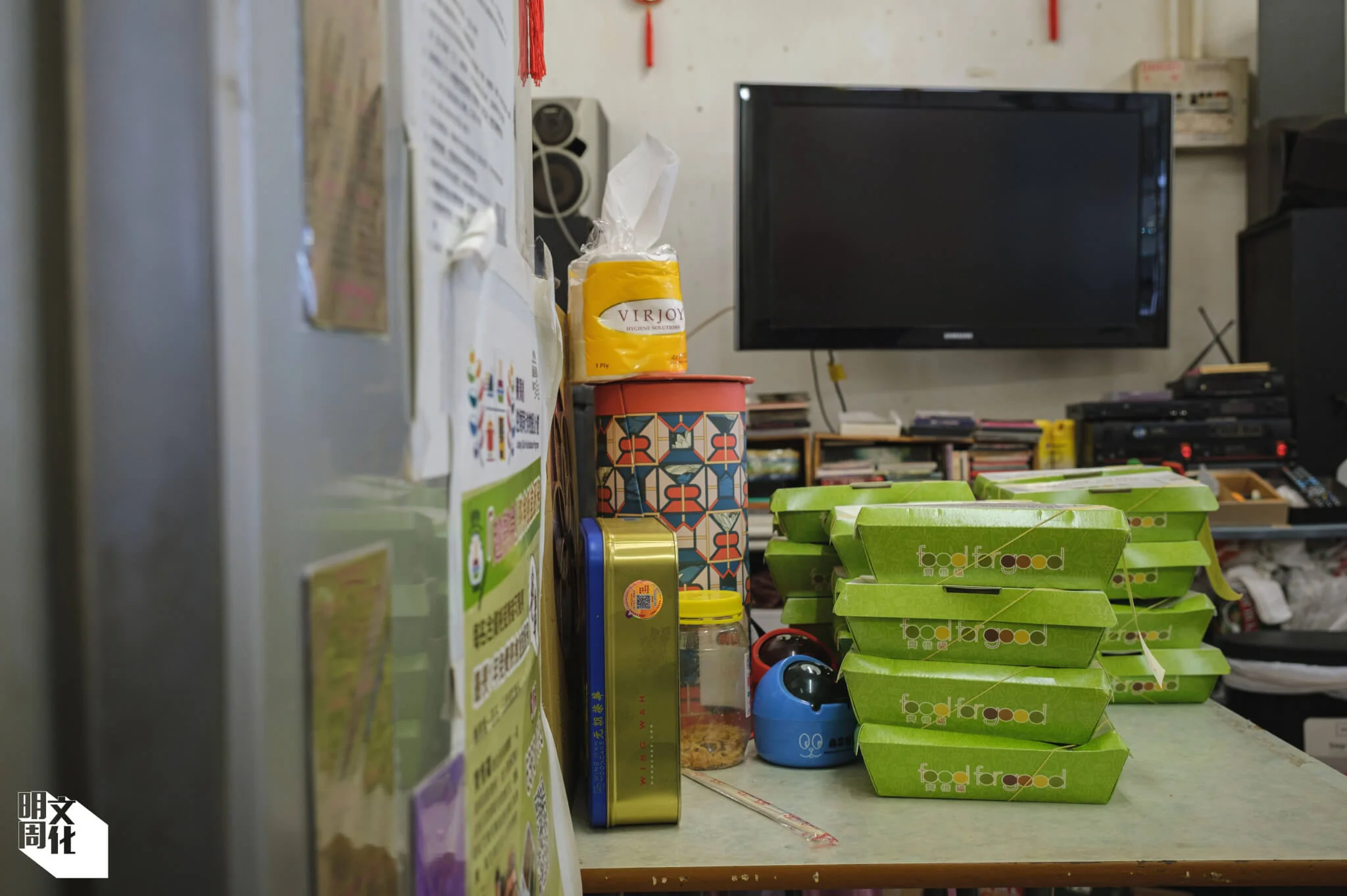 這裏幾乎一星期七天都會為街坊敞開大門,星期一至五,此處是慈善團體「齊惜福」的派飯點,自去年開始,受疫情影響而失業的低收入人士,通過審查後便可前來取飯。星期二和六晚上,斗室更會成為「K房」,Gary的朋友特意送來影音設備,讓一眾街坊傾情演唱。