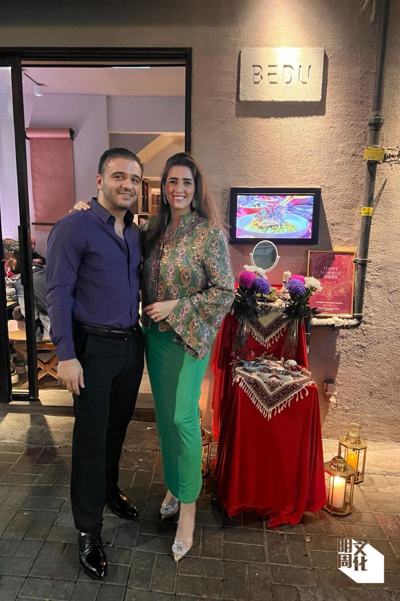 Nasiri及其伊朗朋友,於諾魯孜節在香港一間中東餐廳吃飯。(受訪者提供)