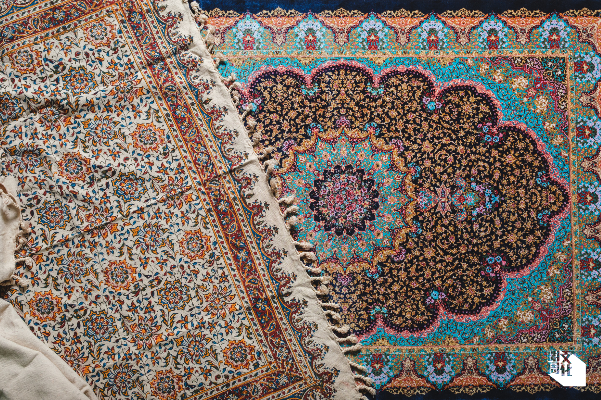 Nasiri向記者介紹他家中最具波斯特色的物品。左邊是一個用於鋪在沙發上的棉布,是來自伊斯法罕的古老藝術,製作難度相當高。老工匠會把木製印章沾上由草藥製成的墨水,並親手將逐個圖案印在布上。右邊是每個伊朗人家裏都一定會有的波斯地毯。以大量真絲紡織而成,地毯隨不同方向擺動,呈現出不同色彩;圖案以不同花朵組成,看起來栩栩如生,其他波斯地毯的常見圖案包括動物、建築、鄉村風景等。
