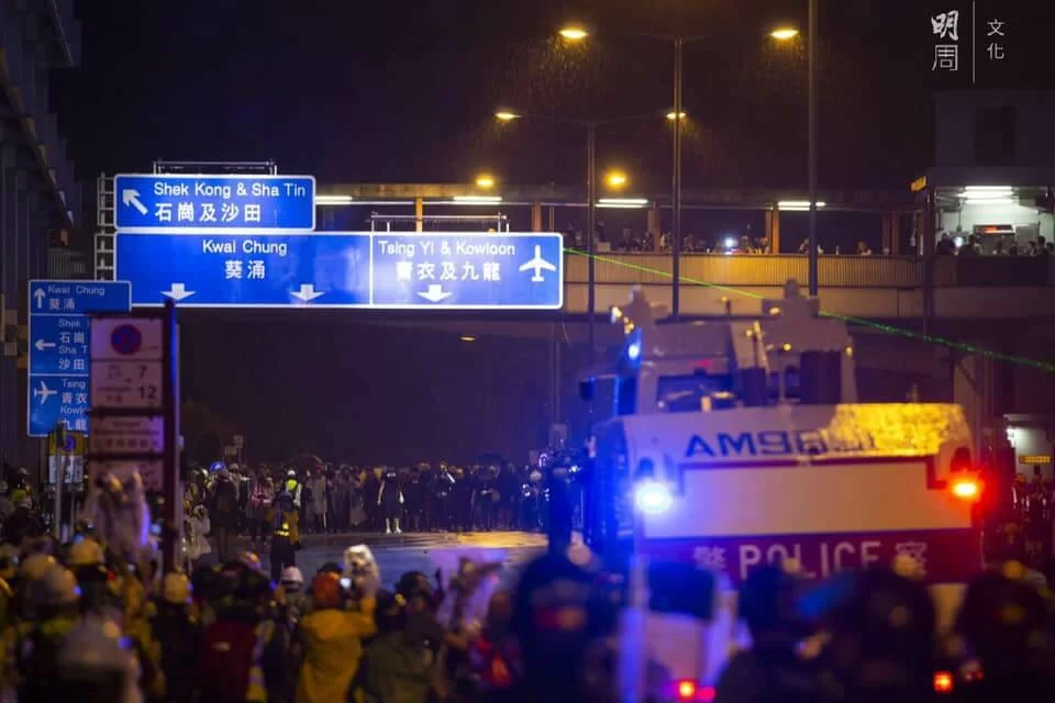 大約七時,水炮車沿德士古道推進,並發射水柱清場,示威者隨即散去,退至葵福路一帶再設路障。