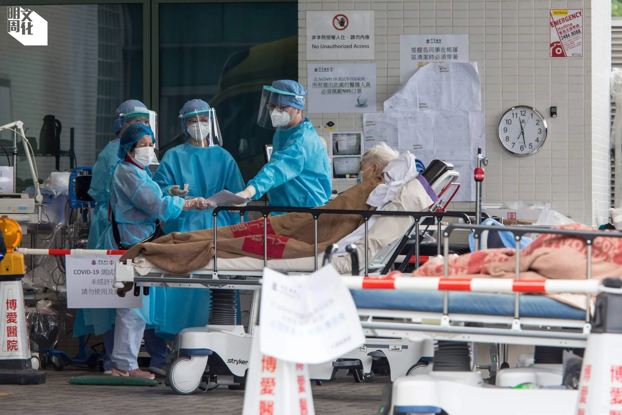 病人與工作量直線上升,醫護人員的壓力當然大增。香港與美國、澳洲和新加坡等地不同,並未訂立醫護人員與病人比例的指標。以澳洲為例,當地已把護士與病人的比例定為一對四,香港的人手比例則已失衡多時,「香港在未爆COVID-19以前已經是一對十至十六,葵涌邨爆發疫情時是一對三十六,那時候的病人行得走得,但已開始做唔掂。」