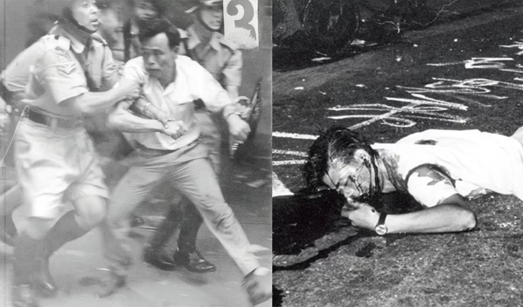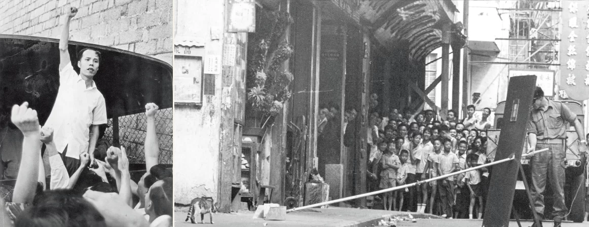 勞工事件演變成政治暴亂,整場暴動離不開文革時期毛澤東鼓吹的極左式「鬥爭」。壁壘分明的文化與新聞界一同捲入漩渦,動亂中示威者襲擊和毆打記者,警方大搜報館,甚至飭令停刊。中學生在示威現場吶喊,甚至在學校自製炸爆時炸斷左手,學生派發宣傳單張鋃鐺入獄。示威現場,左派高舉《毛語錄》大罵英殖政府「紙老虎」,羣眾包圍警署,大罵警察「黃皮狗」,最終釀成警察打死示威者事件。那一幕幕血泊倒地、破口辱罵的情景,距離我們遙遠嗎?